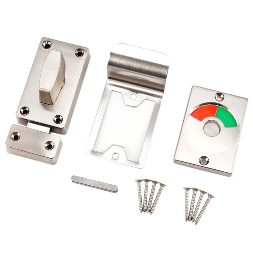 1Set Toilet Door Lock For Bathroom Occupied Sign Stainless Steel Indicator Privacy WC Latch