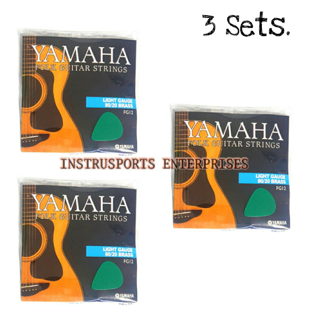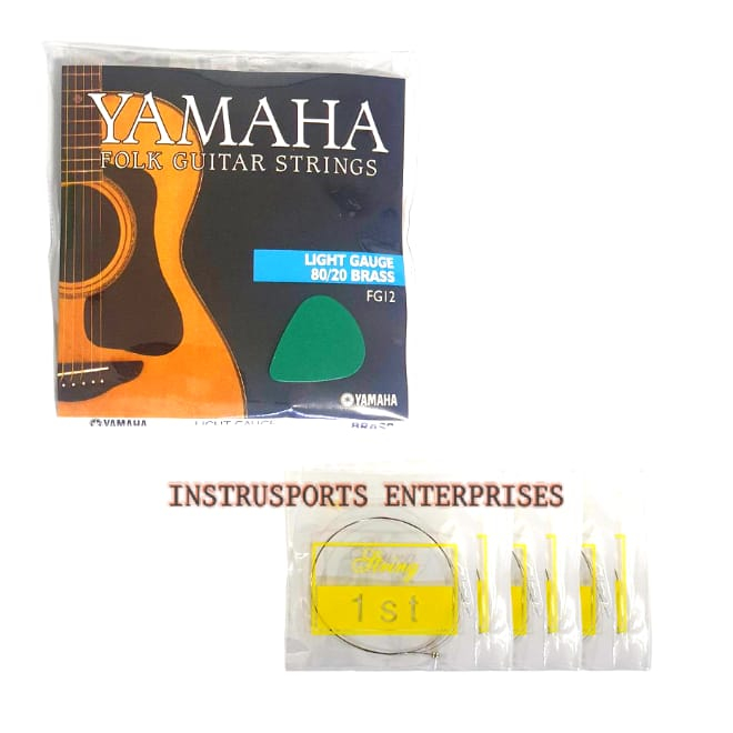 1Set. YAMAHA FG12 - Light Gauge 80/20 Brass Acoustic Folk Guitar Strings w/ +Free 1 Pc. Guitar Pick