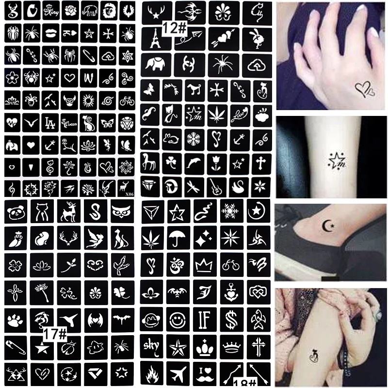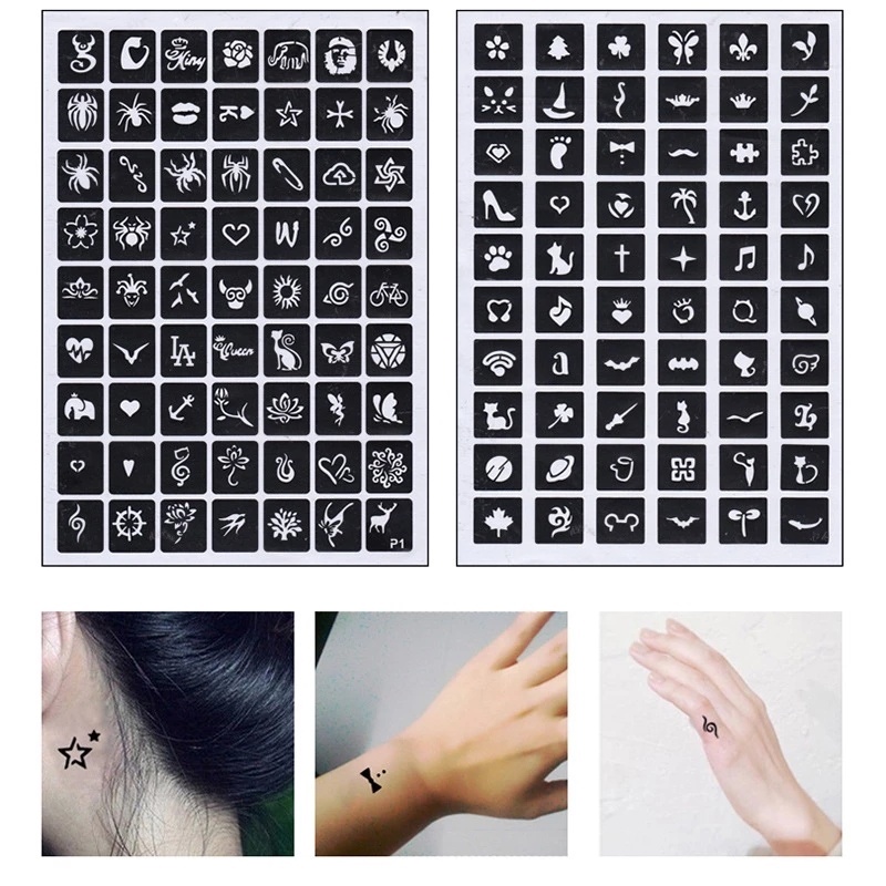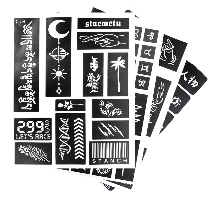 1Sheet Random Style Self-adhesive Tattoo Stencil/ Water Transfer Mixed Style Stencil Stickers/Body Art Temporary Tattoo Stencil for Men and Women