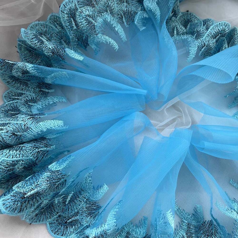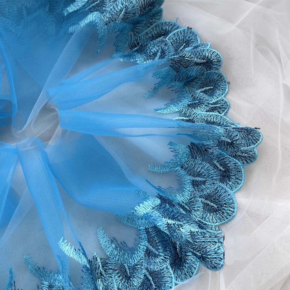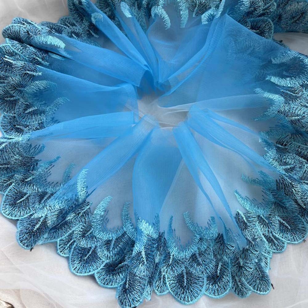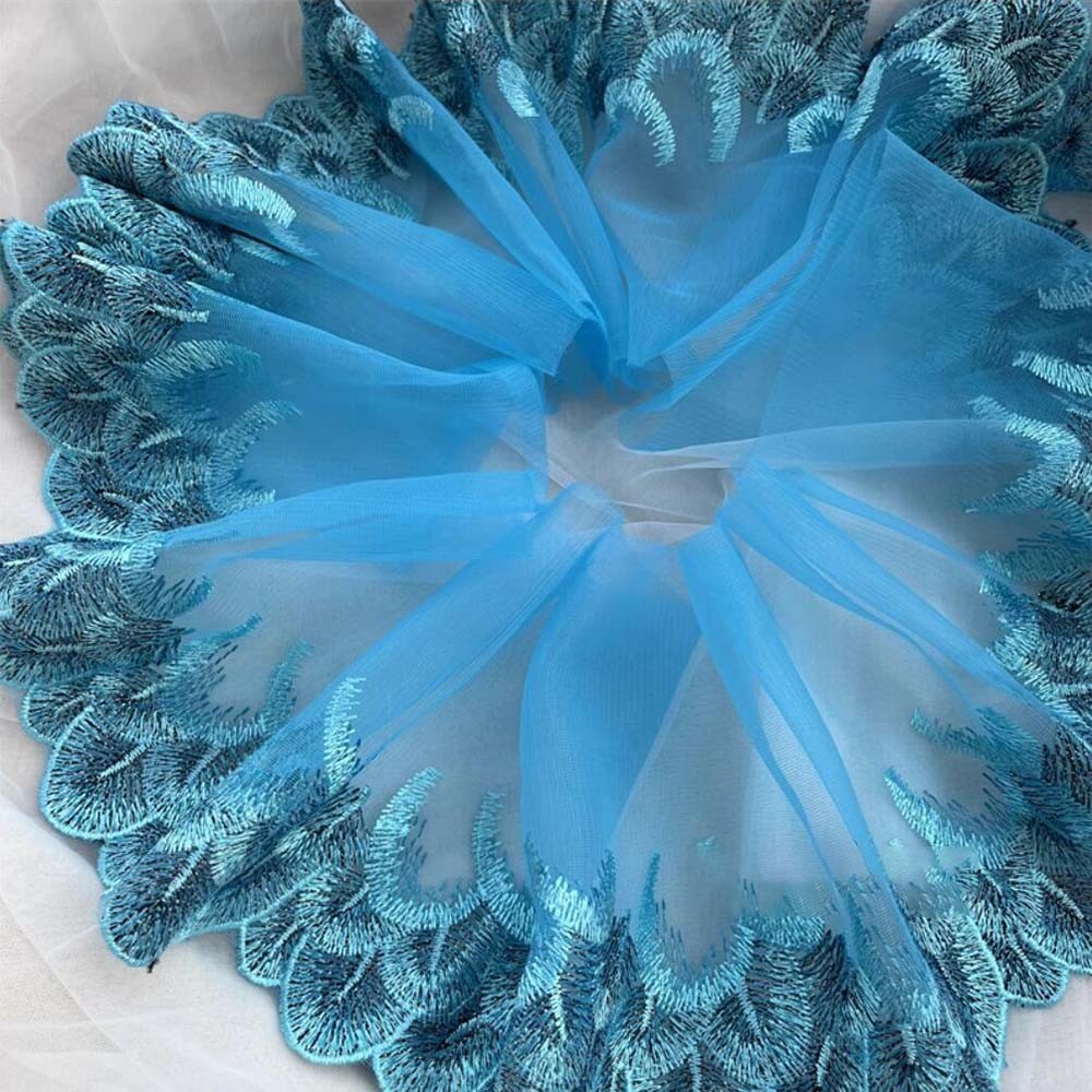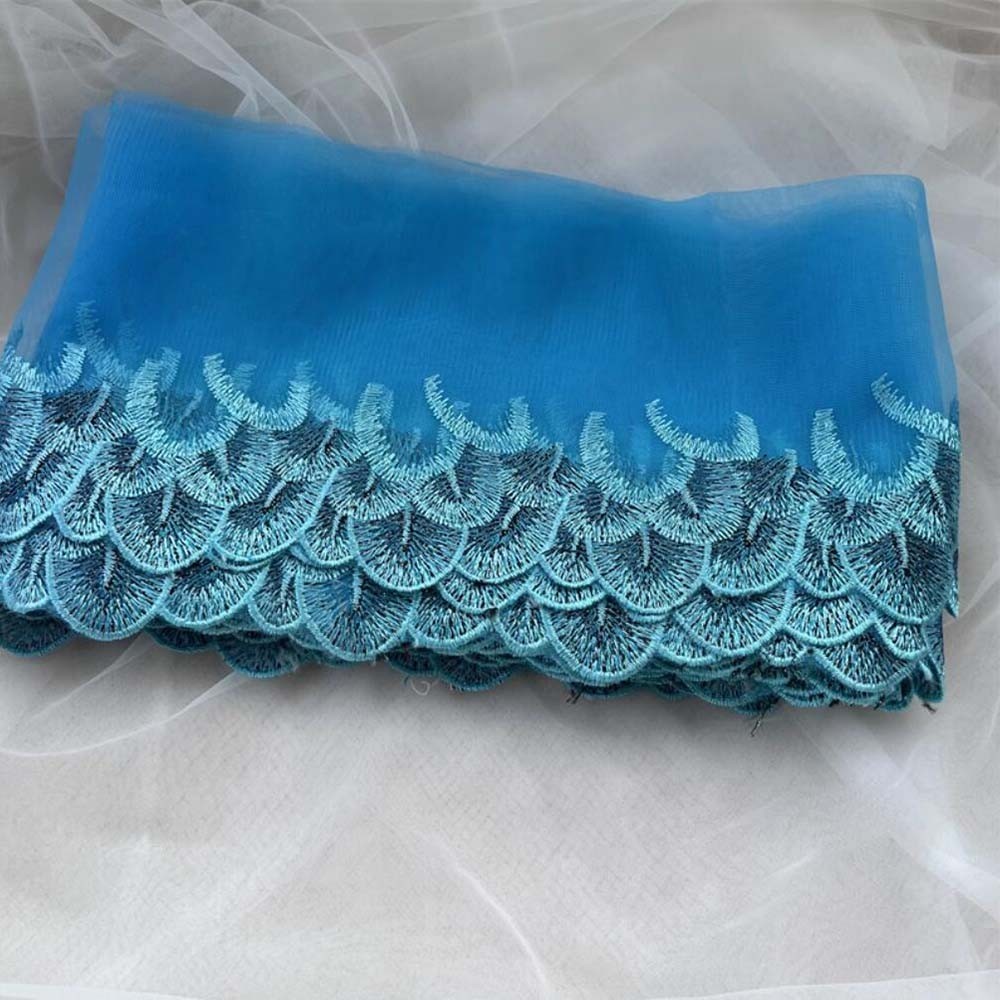 1Yard Blue Lace Trim Sewing Fabric DIY Garment Accessories 21CM Wide