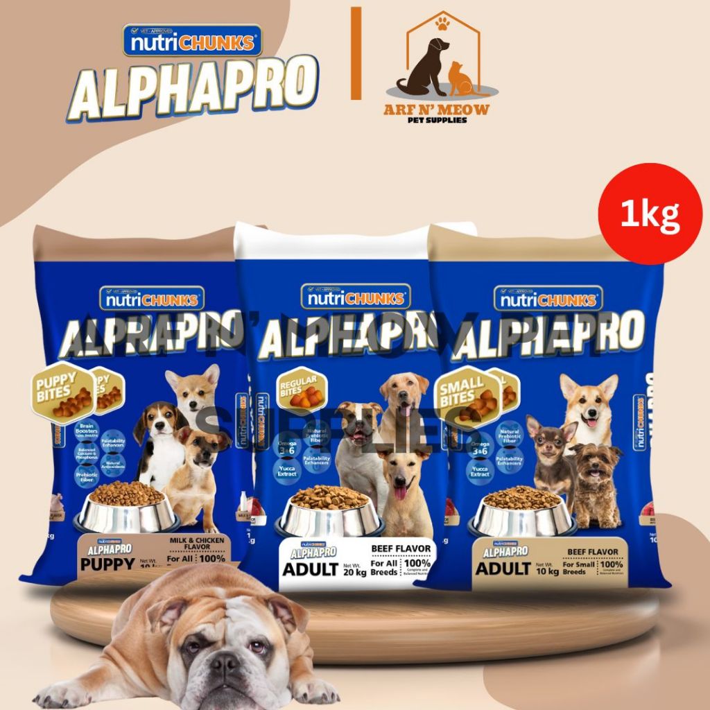 1kg NutriChunks Alpha Pro Dogs Dry Food All Stages Adult Puppy Regular Bites Small Bites Puppy Bites