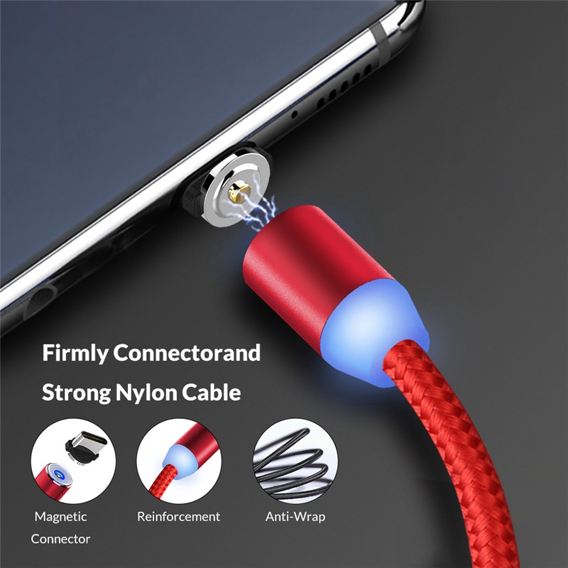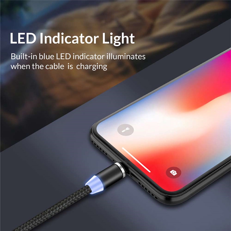 1m 3.1A Fast Charger Magnetic Type C/IOS/Micro 360Round USB Cable With LED Light