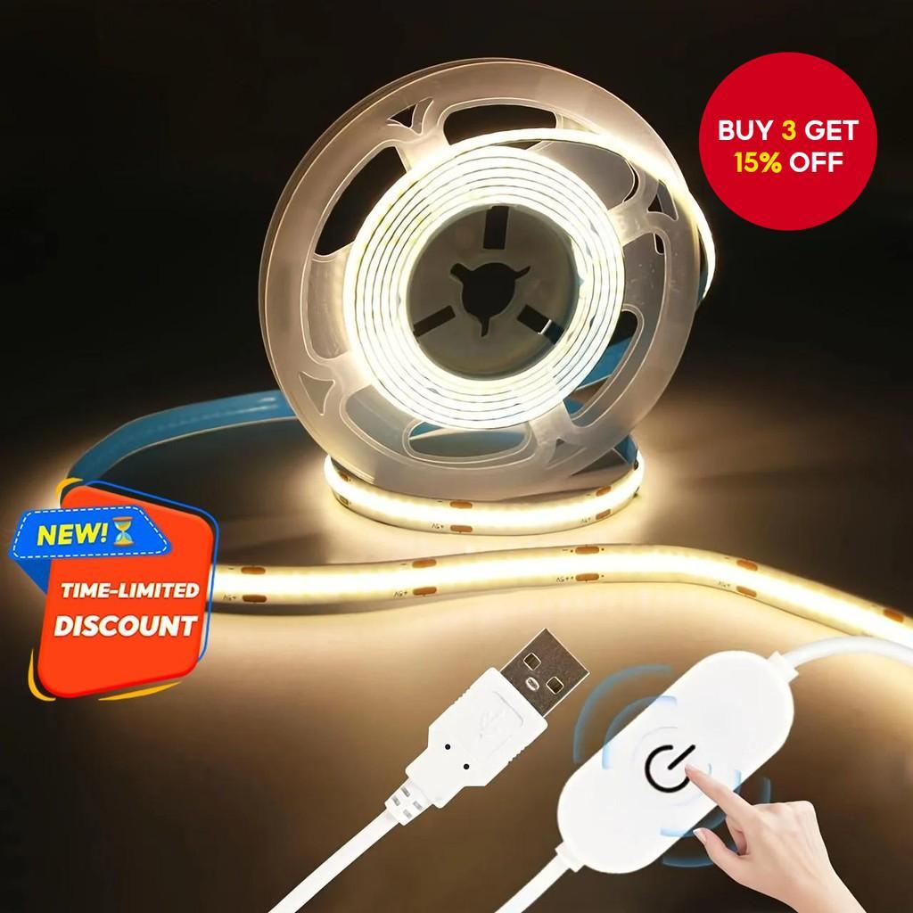 1m-5m Usb Led Strip Light, 5v, 320 Leds/m, Dimmable with Cob Touch Sensor, Ideal for Diy Tv backlighting, For Christmas Decoration