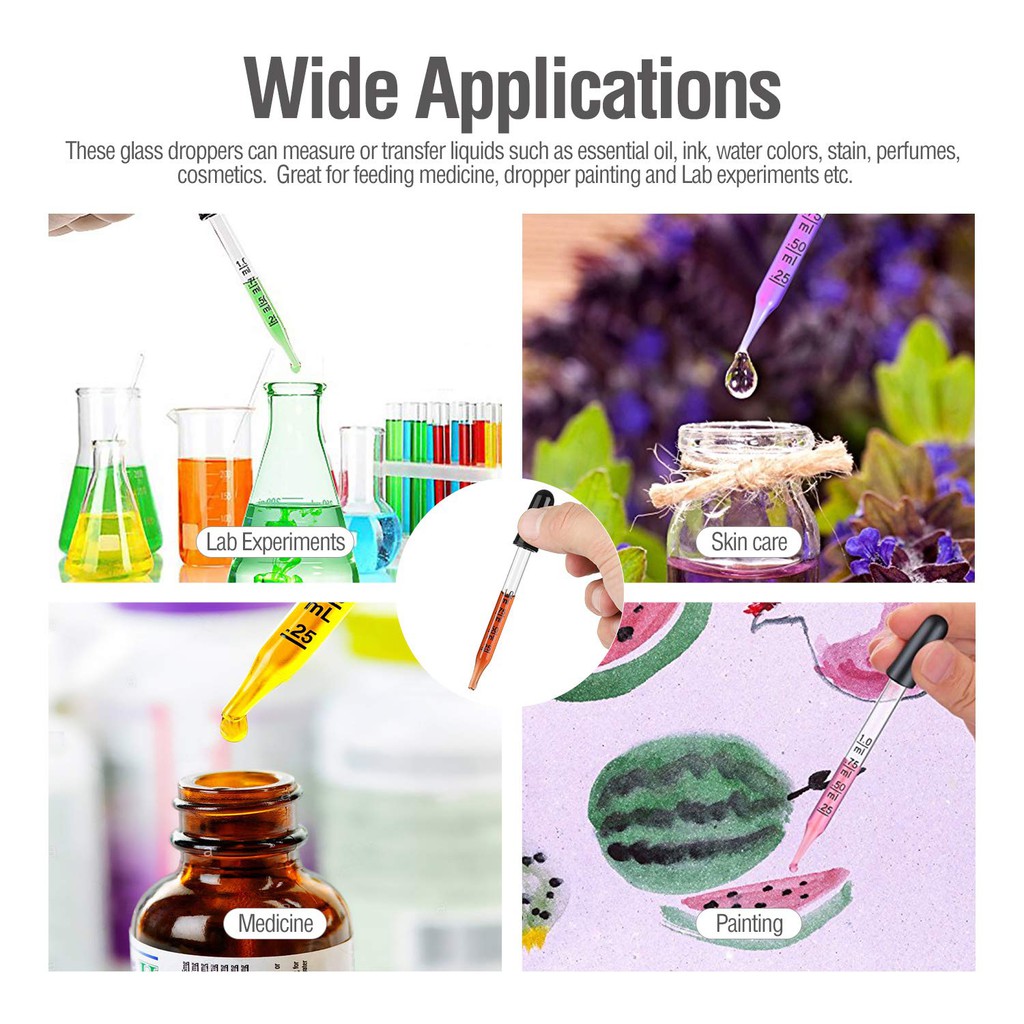 1ml Glass Graduated Dropper Straight/Elbow Measuring Pipette Essential Oil Dropper for Laboratory Home