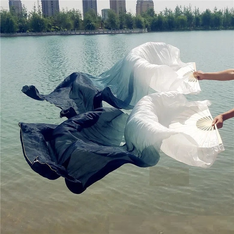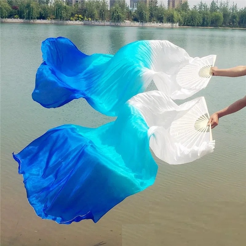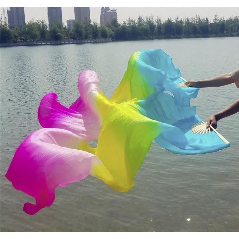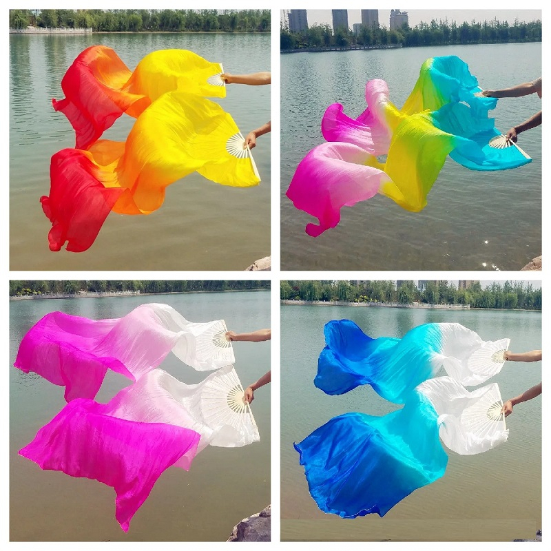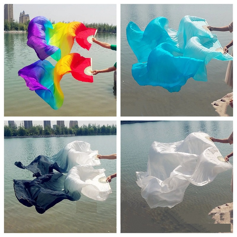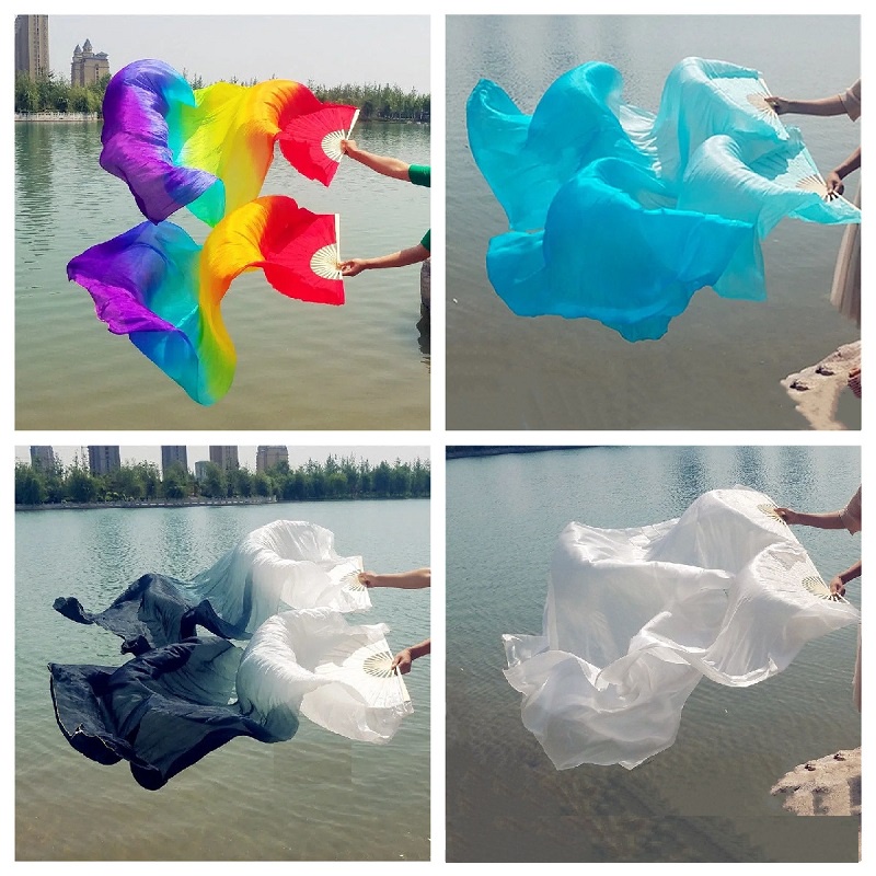 1pair 1.8M Left + Right Belly Dancing Long Fans Veils Dance Fan