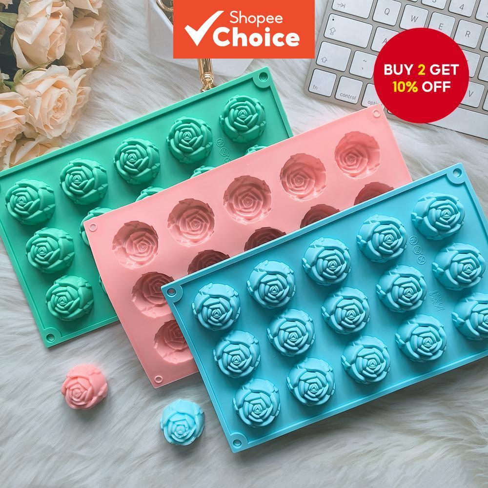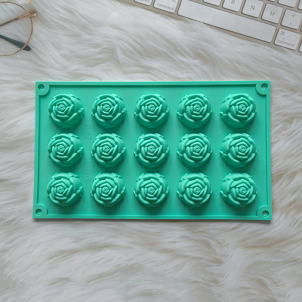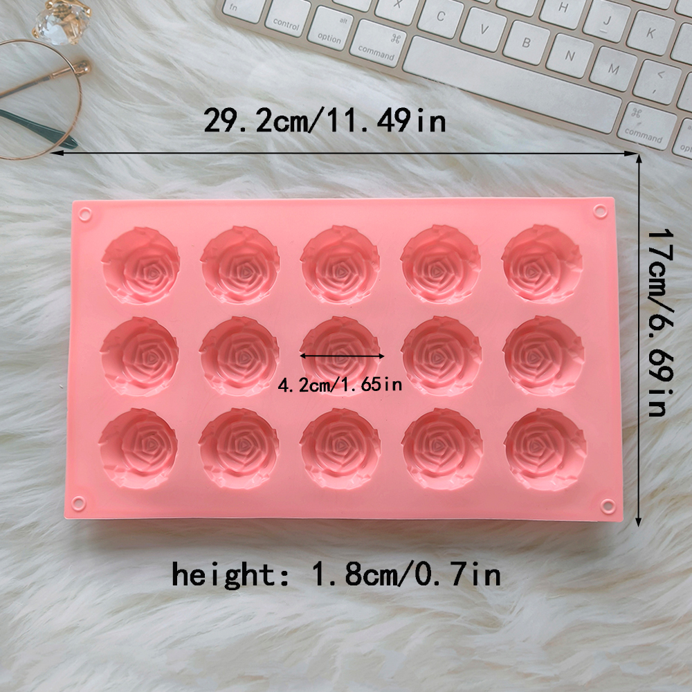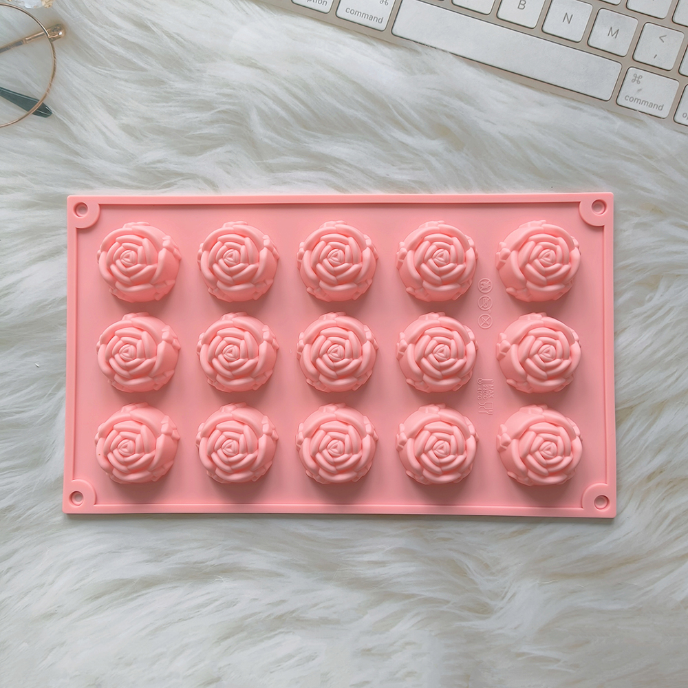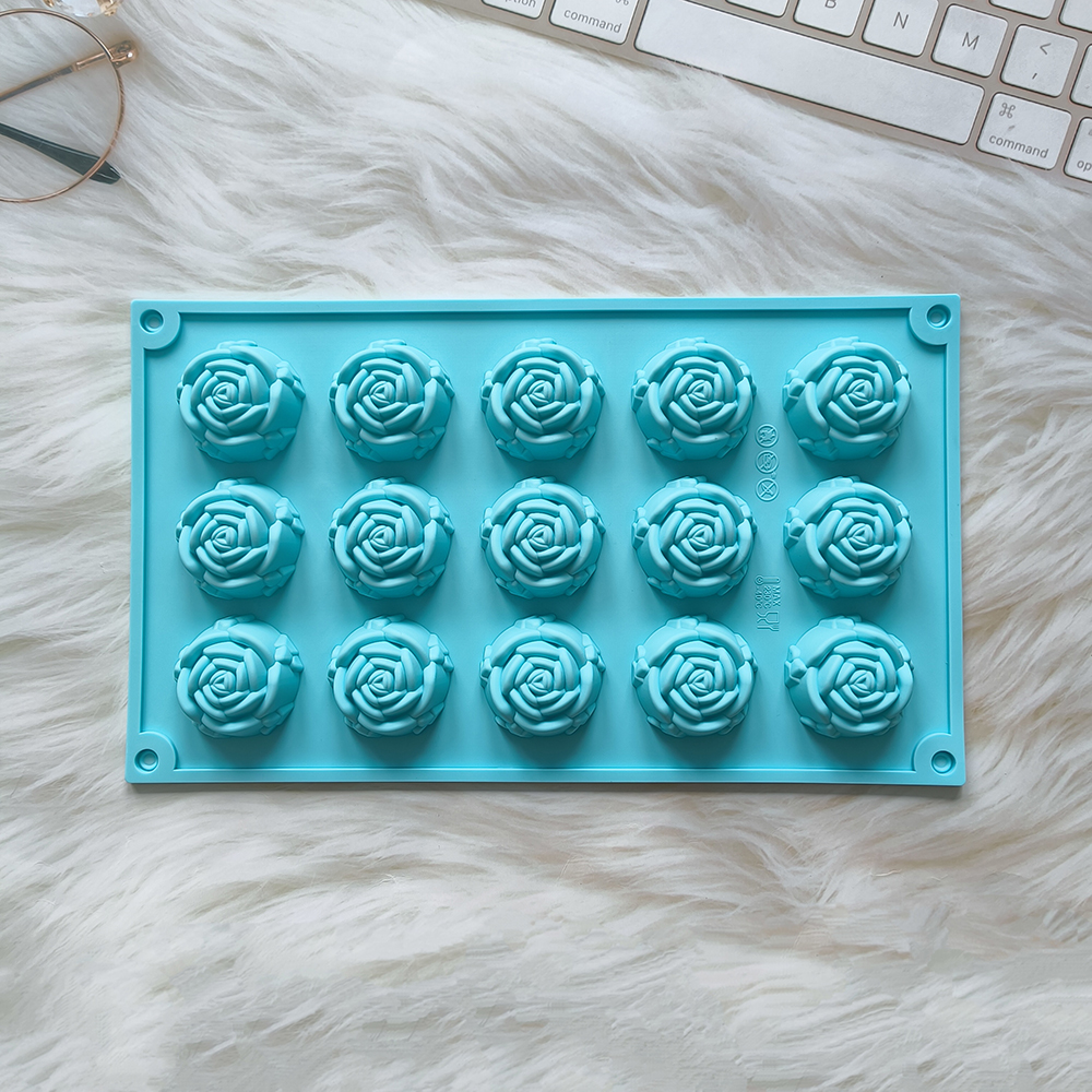 1pc 15 cavity rose shape cake mold, silicone chocolate candy mold, DIY dessert pudding cake decoration baking mold