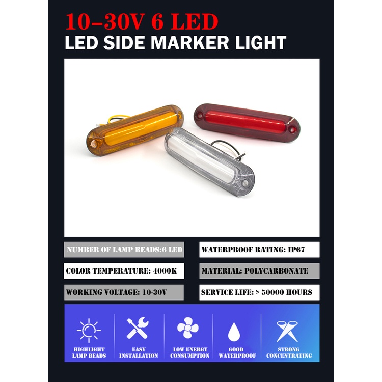 1pc 6 SMD LED Side Marker Lights Car External Lights Indicators Warning Tail Light Trailer Truck Lorry Boat Lamp12V / 24V