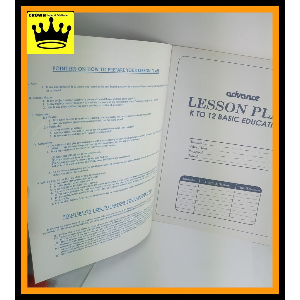 1pc Advance Lesson Plan Book K - 12 BASIC EDUCATION