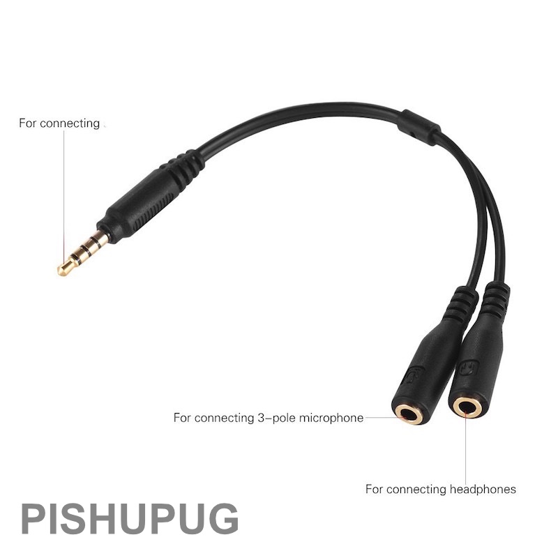 1pc Black 3.5mm Male TRRS to 2 Female TRS Audio Connector TRRS Y Splitter Cable Adapter