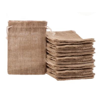 1pc Brown Jute Bag with drawstring Burlap linen drawstring Jute Sack for Jewelry wedding