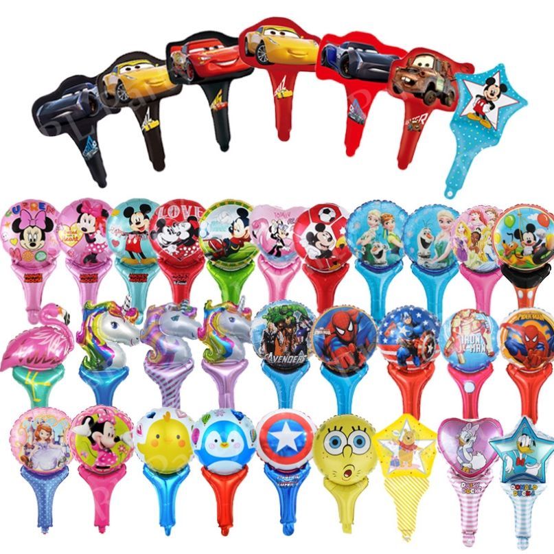 1pc Cartoon Handheld Balloons Aluminum Foil Balloon Peppa Pig Superheros Spiderman McQueen Cars Unicorn Superheros Spiderman Magic Stick Birthday Party Supplies Kids Toys