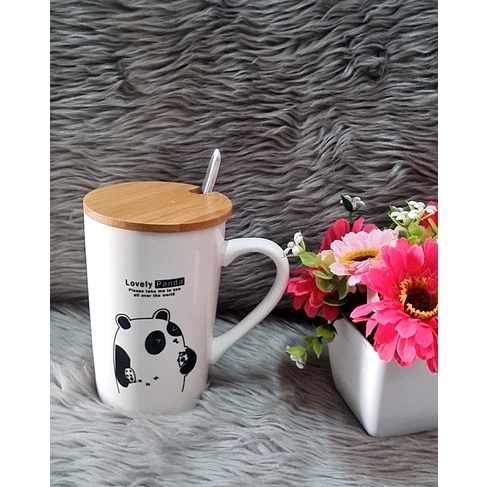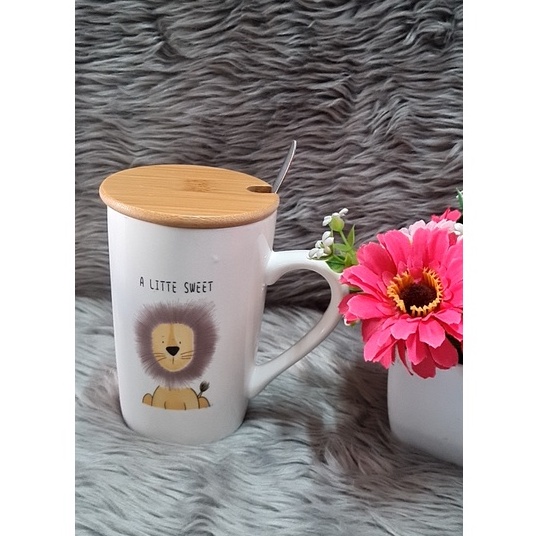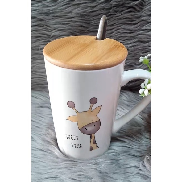 1pc Cute Animal/Coffee Design Ceramic Mug with cover and spoon