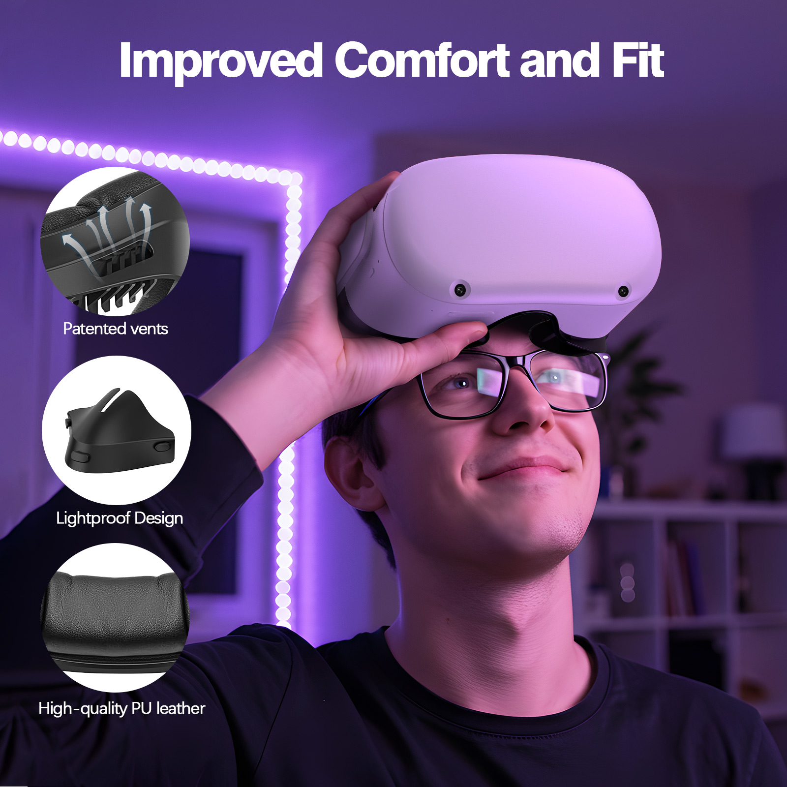 1pc Facial Interface & Face Cover Pad for Oculus Quest 2, Sweat-Proof PU Foam Cushion - VR Accessories for Meta Quest 2