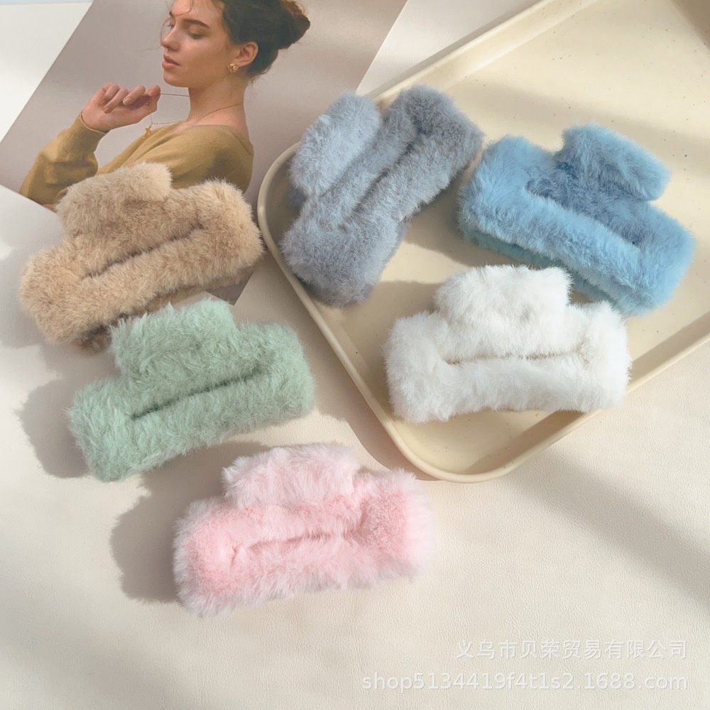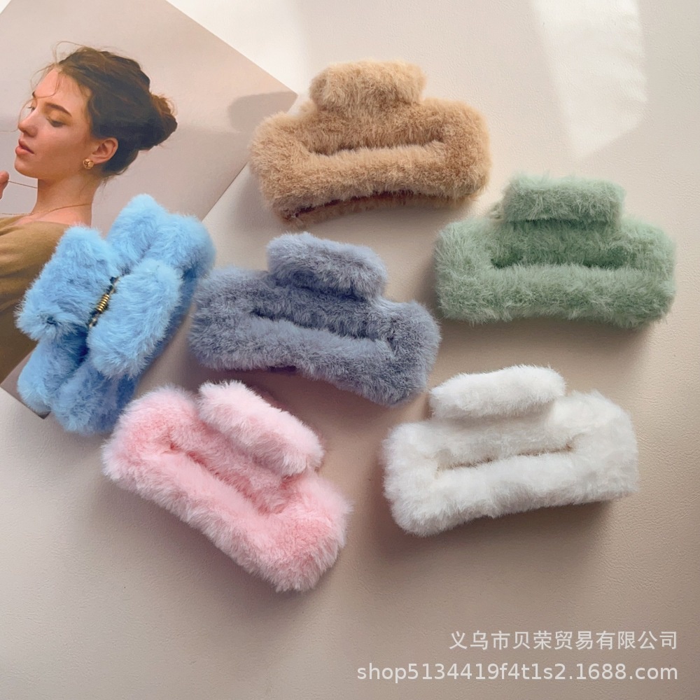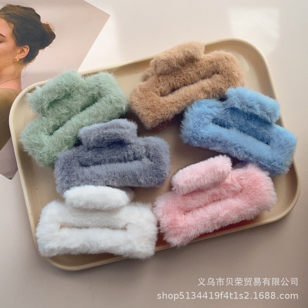 1pc Fluffy Hair Claw Clip New Trendy Hair Clamps Plush Hairpin Simple Temperament Hair Accessories