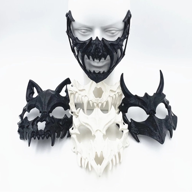 1pc Halloween Horror 3D Bone Skull Long Teeth Demon Half Face Mask/ Skull Cosplay Mask Halloween Performance Dress Up Props