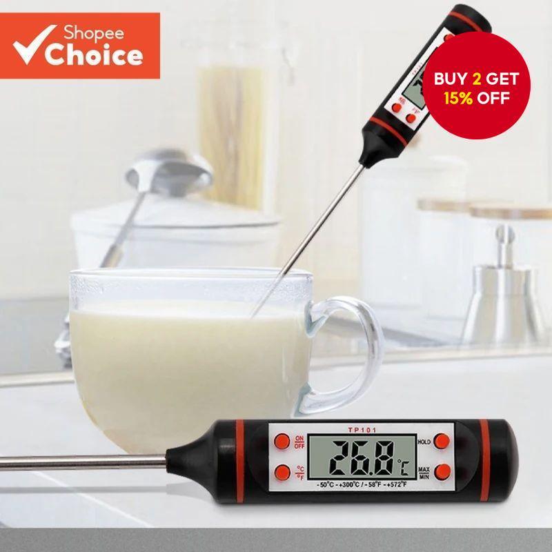 1pc Kitchen Food Baking Digital Thermometer Black Electronic Probe Digital Display Liquid Bbq Thermometer For Kitchen, Milk, Candy, Meat Thermometers And Timers, Bbq And Grills