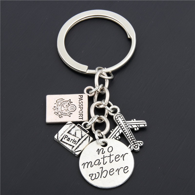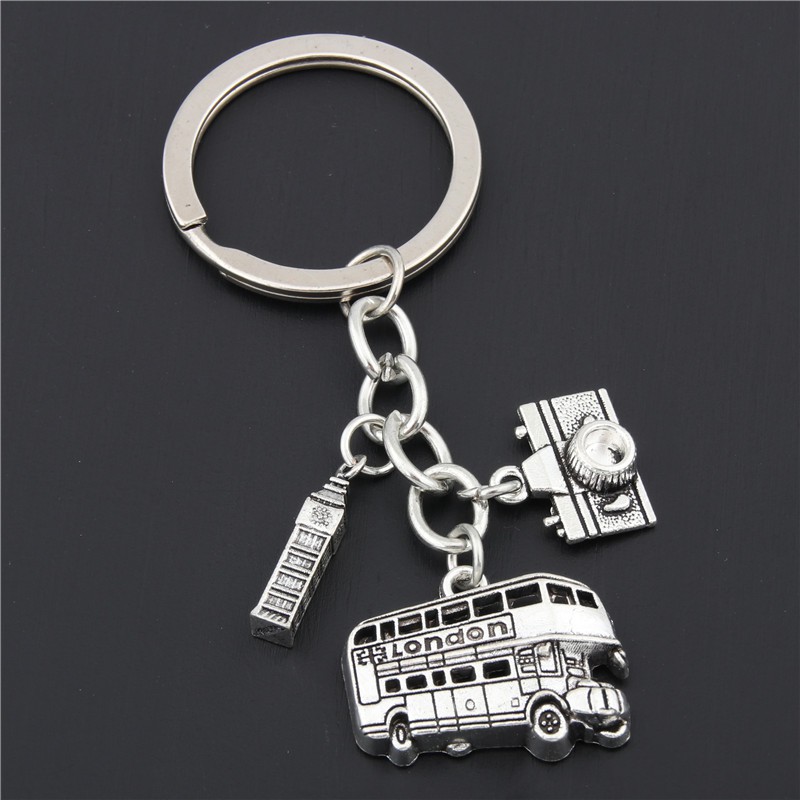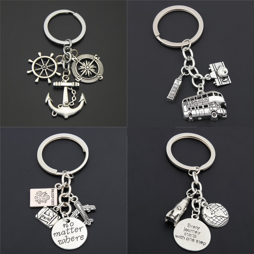 1pc London Big Ben Keychains No Matter Where Airplane Charms Compass Keyring With Earth Travel Jewelry For Man