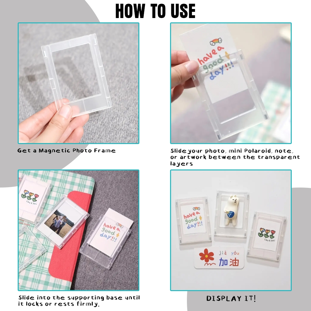 1pc Magnetic Photo Frame Mini Photocard Instax Holder Fridge Decoration Polaroid Photo Stand Display