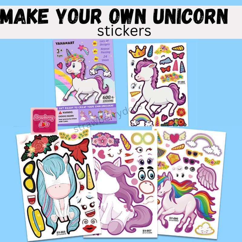 1pc Make your own Unicorn Stickers Unicorn Party Unicorn Birthday Lootbag Fillers