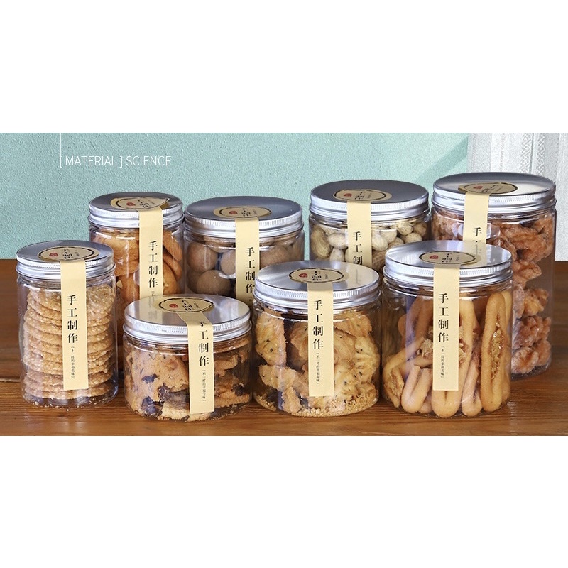 1pc PET Plastic Jar Container Transparent Round Food Jar w/ Aluminum Cap Airtight Round Container
