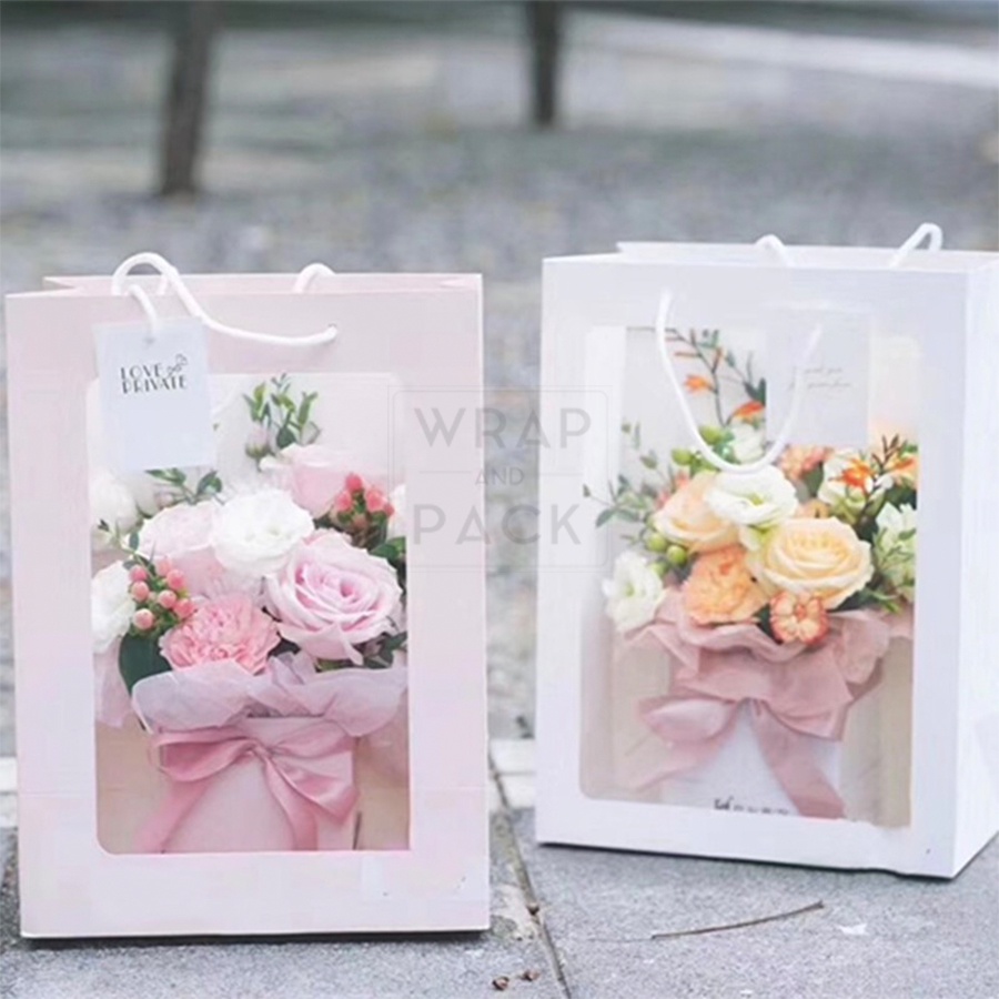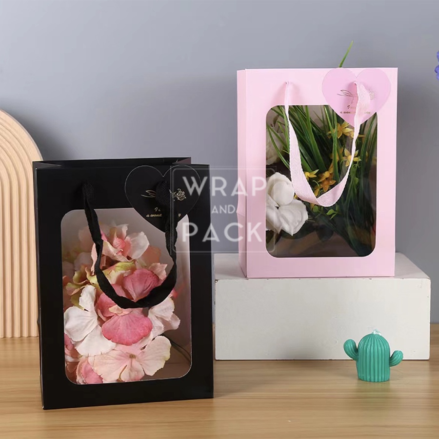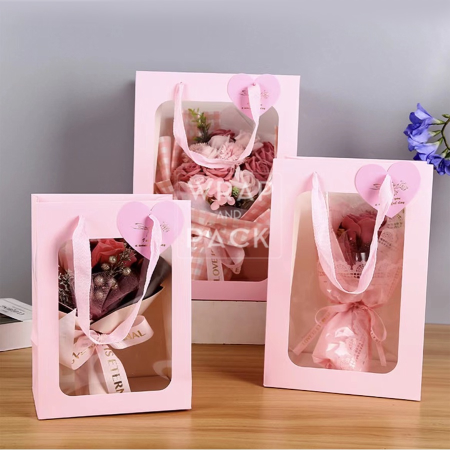 1pc Paper Bag Clear Window Gift Bags for Stuff Toys Flower Bag Gift Packaging Valentine's valentines
