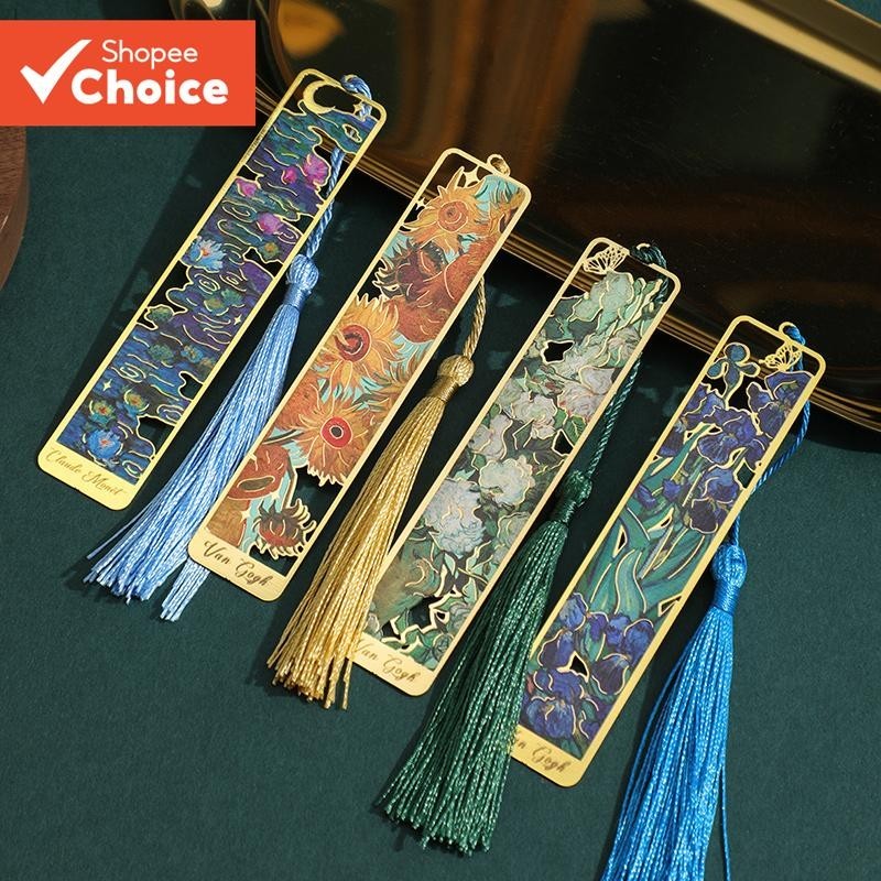 1pc Retro Floral Painting Metal Bookmark Hollow Bronzing Bookmark With Tassel For Book Club Readers Writers Book Lovers Students Teachers Friends