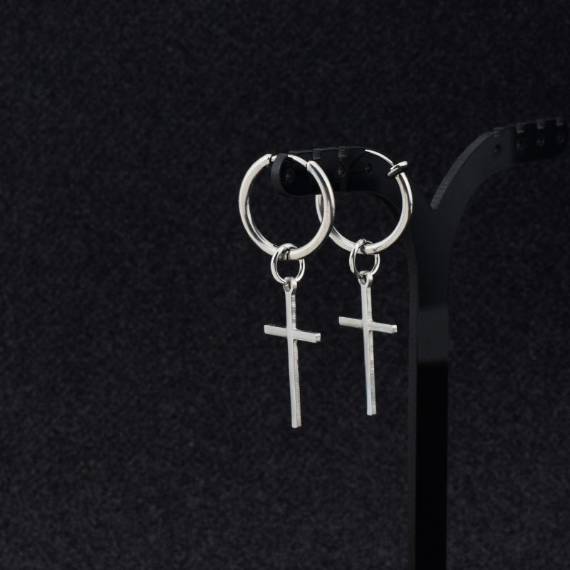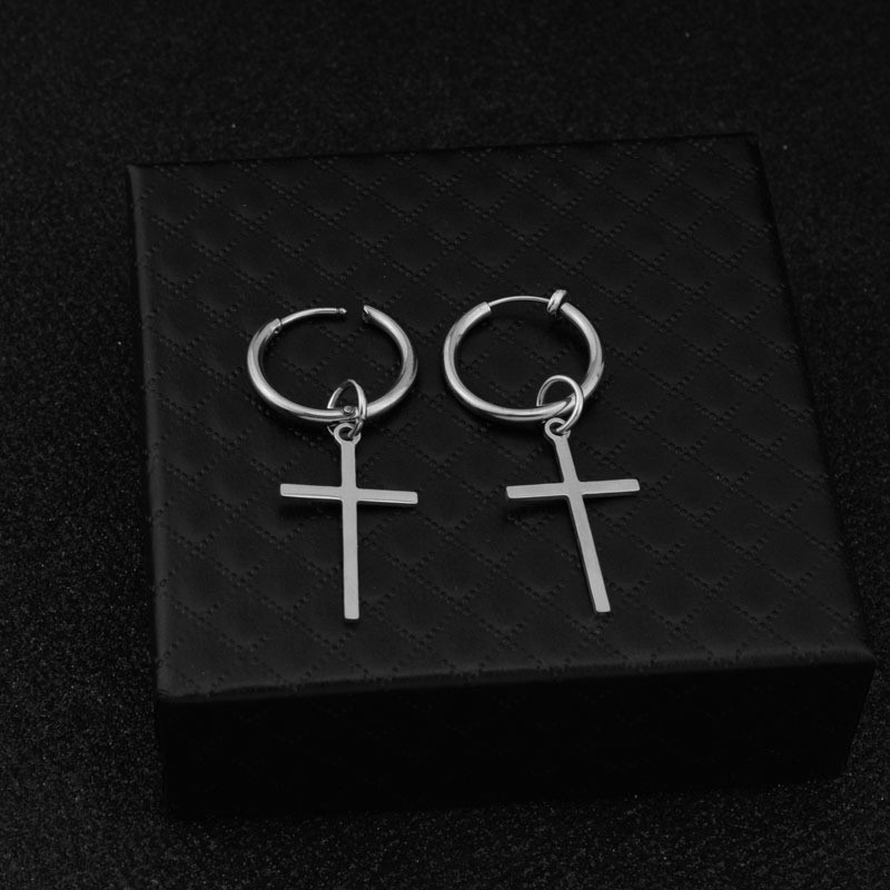 1pc Silver Cross Earrings BTS SUGA Kpop Idol Earrings Hoop for Christmas Men Boys Girl Friends