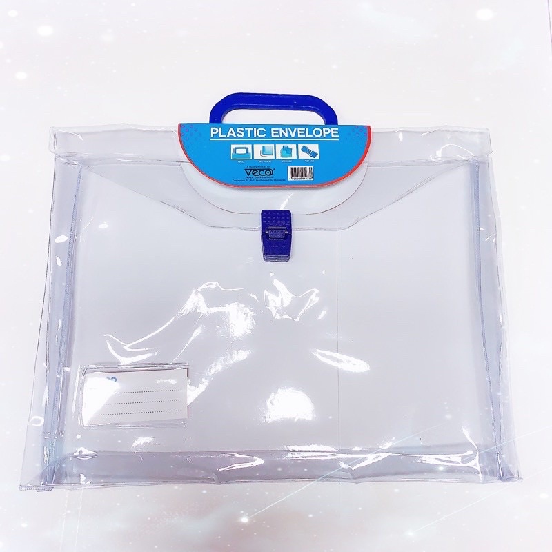 1pc Veco Plastic Long Expanding Transparent Envelope (Assorted Color Handle & Pushlock)