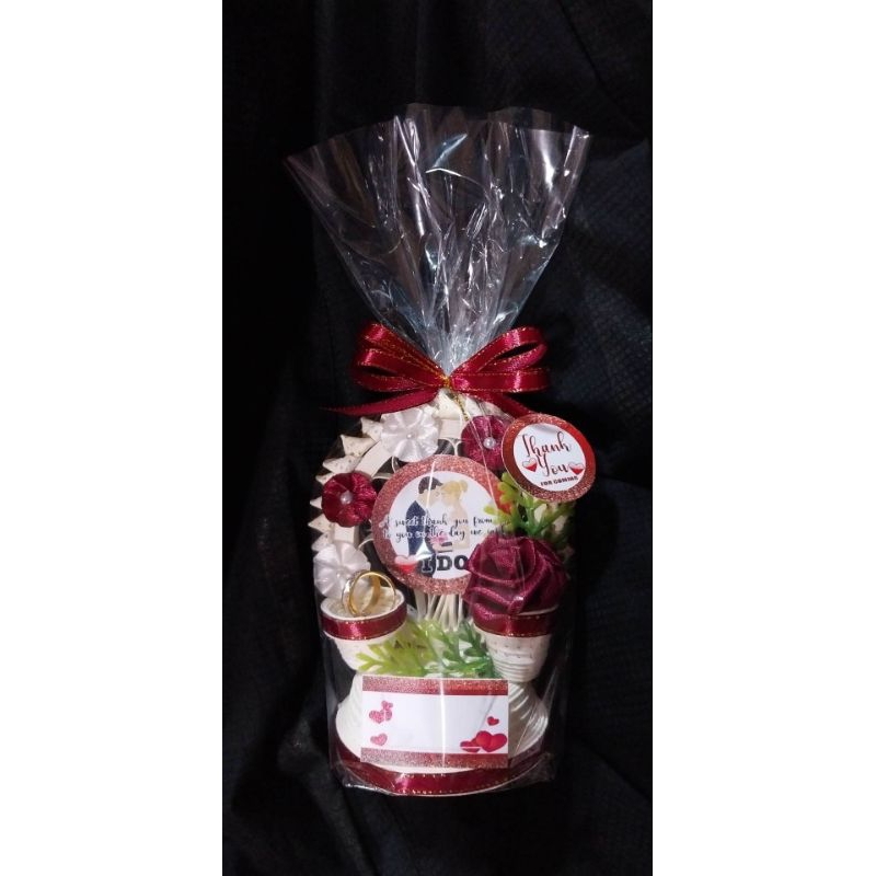 1pc Wedding Souvenirs with Ring and Artificial Color Motif Flower | Souvenir Base Paper Machette
