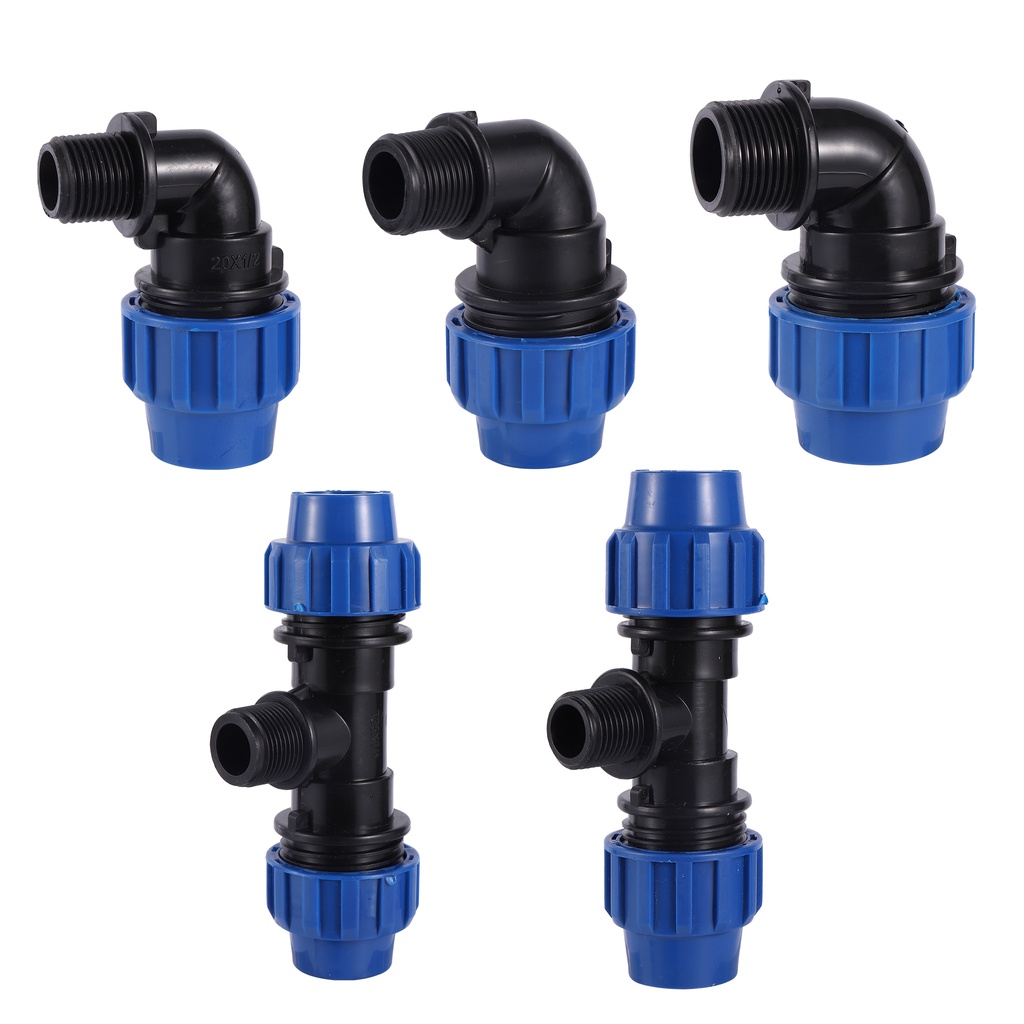 1pcs 1/2" 3/4" 1" Male Thread Elbow Tee Connector Plastic PE Pipe Tee Elbow Coupling Garden Agriculture Irrigation Tubing Fittings