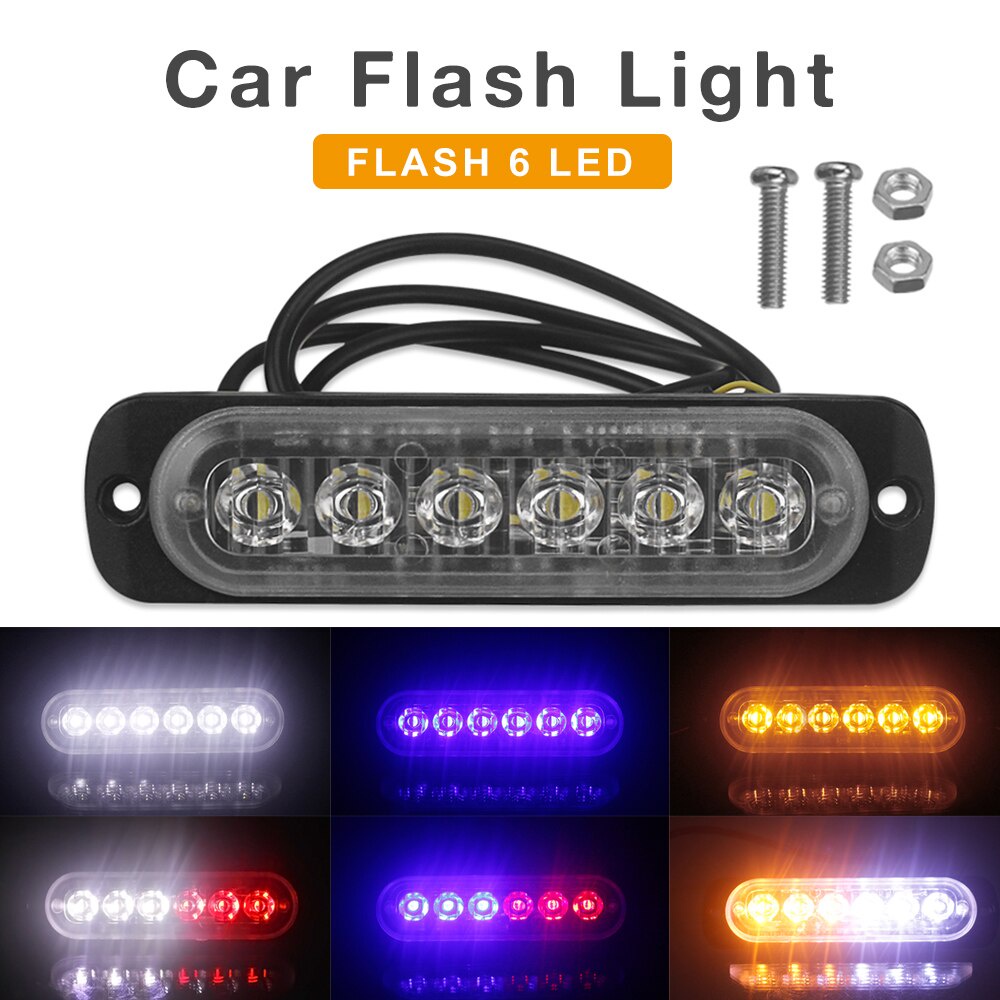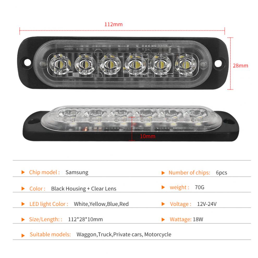 1pcs 12V 24V 18W 6 LED Waterproof Car Emergency Light Bar Beacon Warning Hazard Flash Strobe Lamp for Auto Truck Off Road
