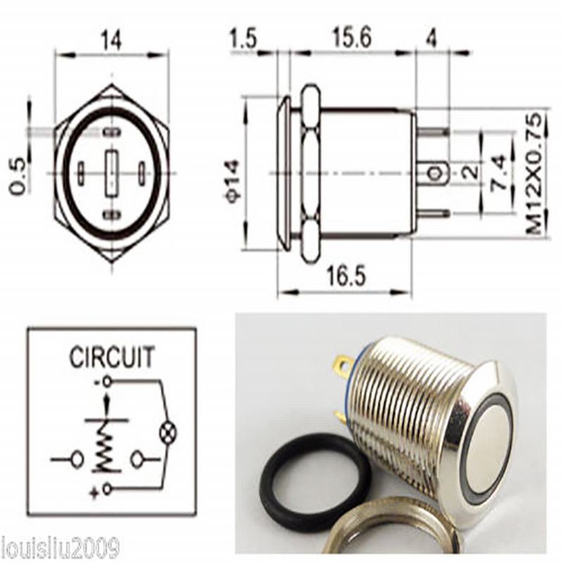 1pcs,12V Metal Switch latching Push Button RED Led 16mm