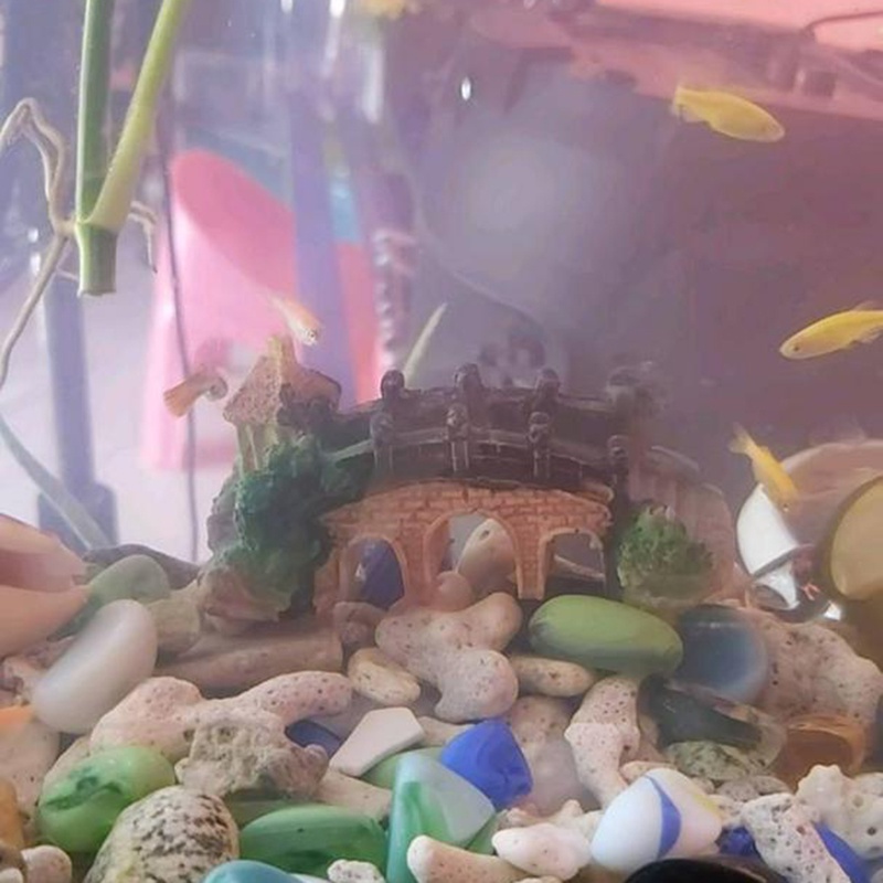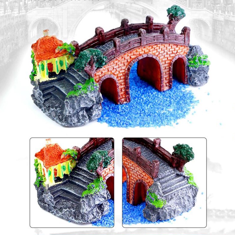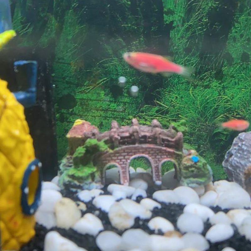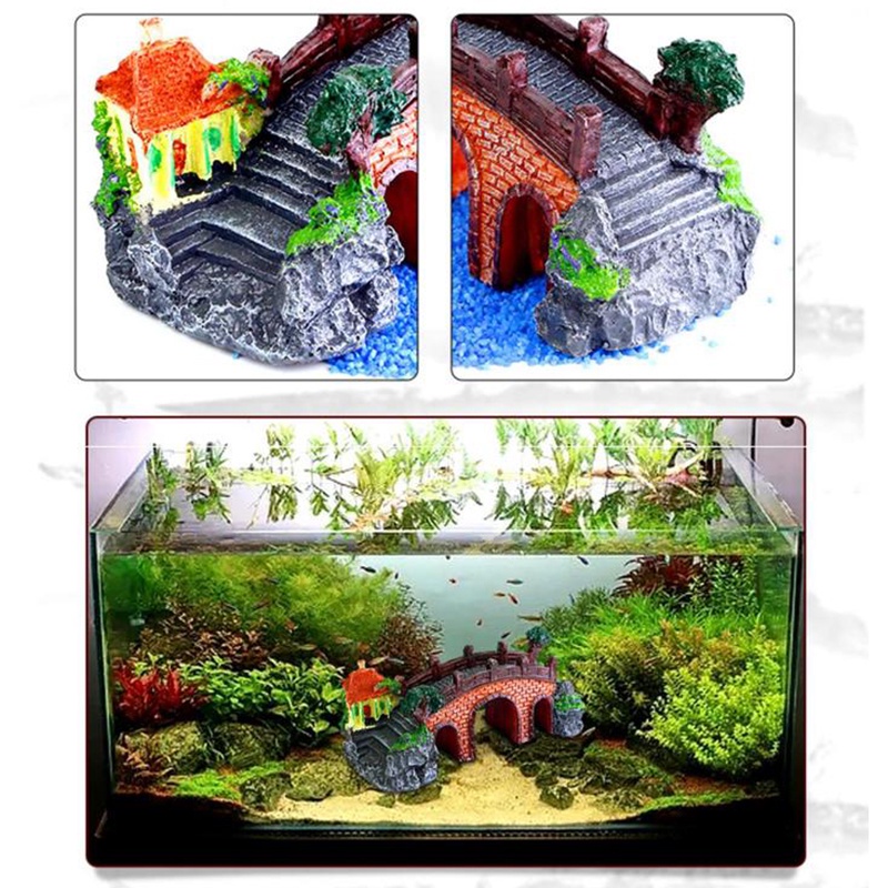 1pcs Aquarium Resin Bridge Bridge Landscape Ornament Pavilion Tree Fish Tank Decor