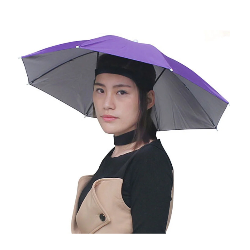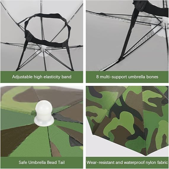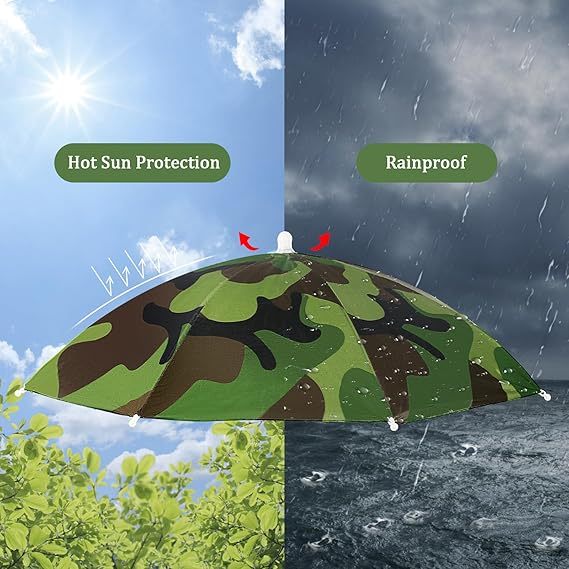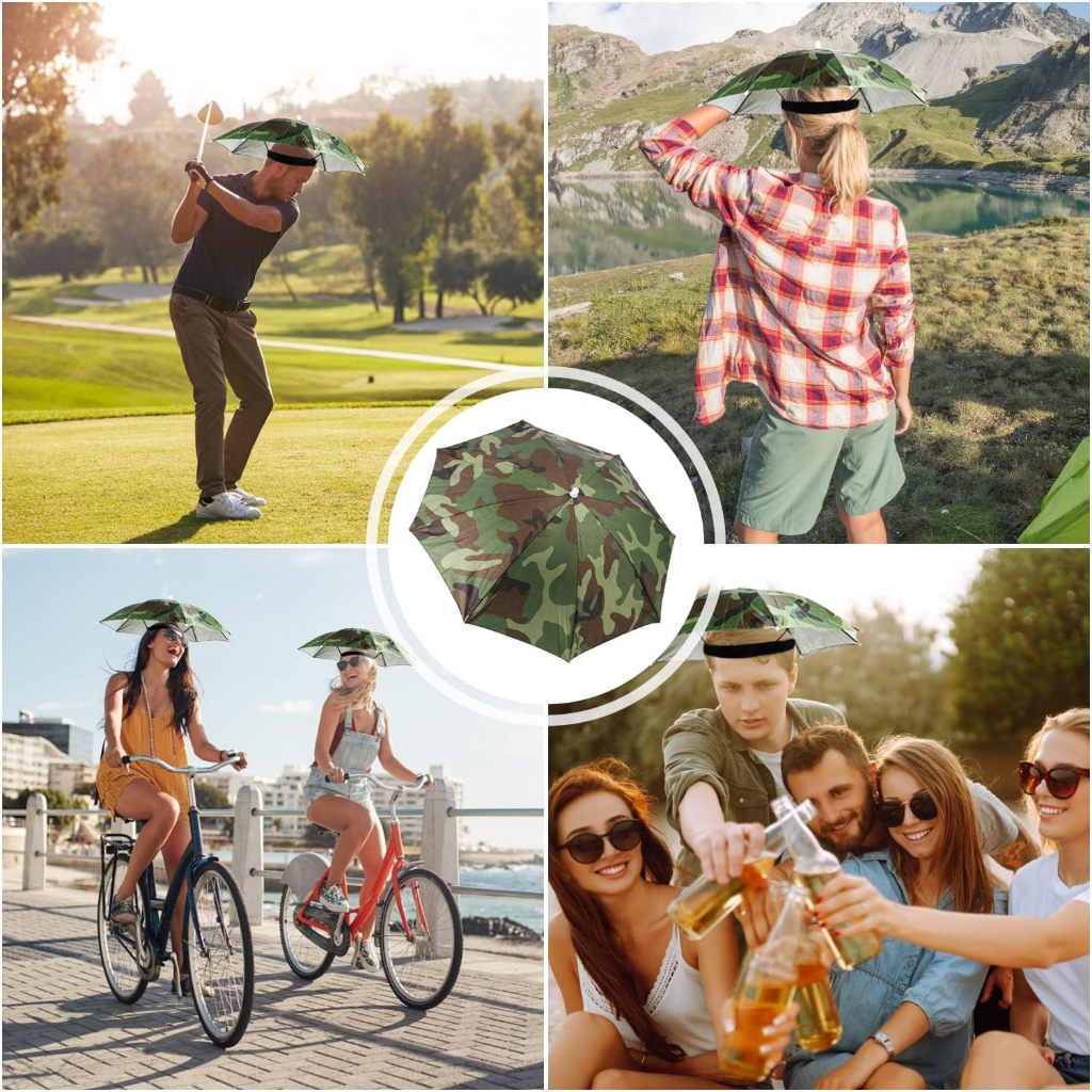 1pcs Head Umbrella Hats with Elastic Bands, Camo Funny Umbrella Hat, Mini Portable Hands Free Umbrella Fishing Caps, Outdoor Sun Rain Umbrella Hats for Adu