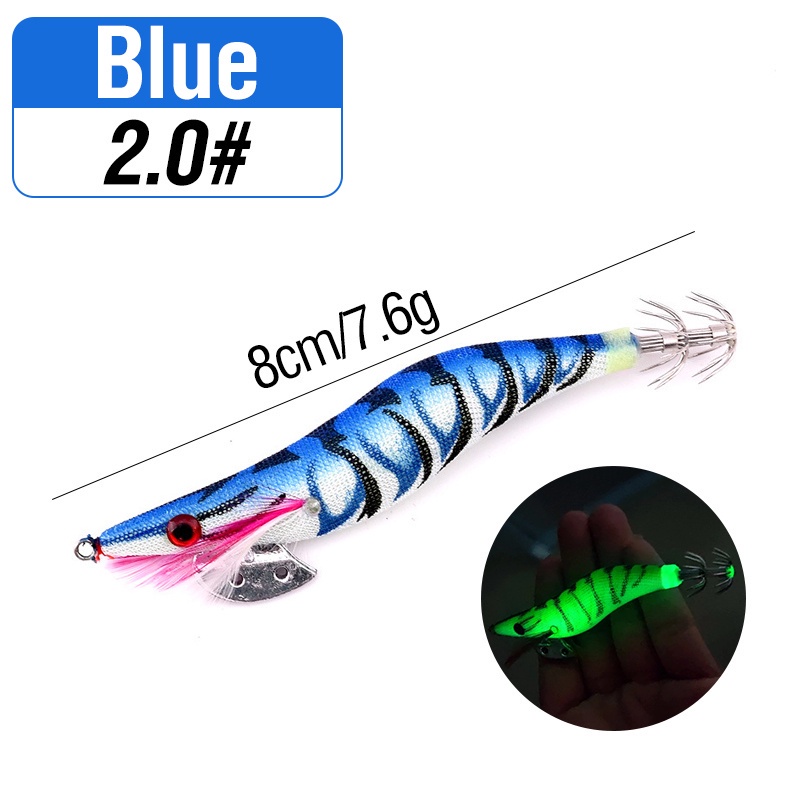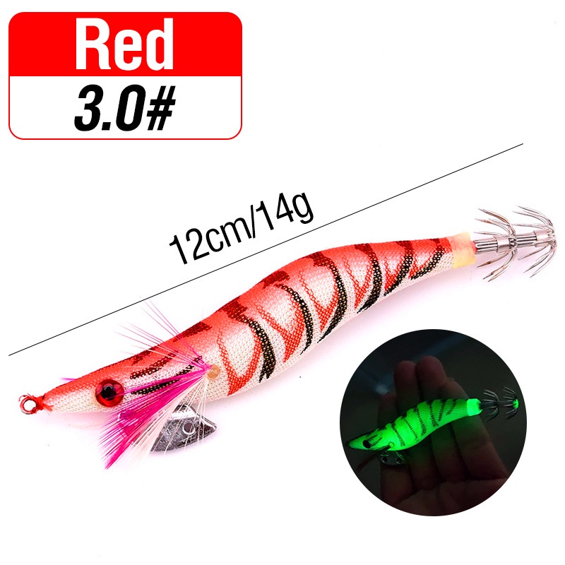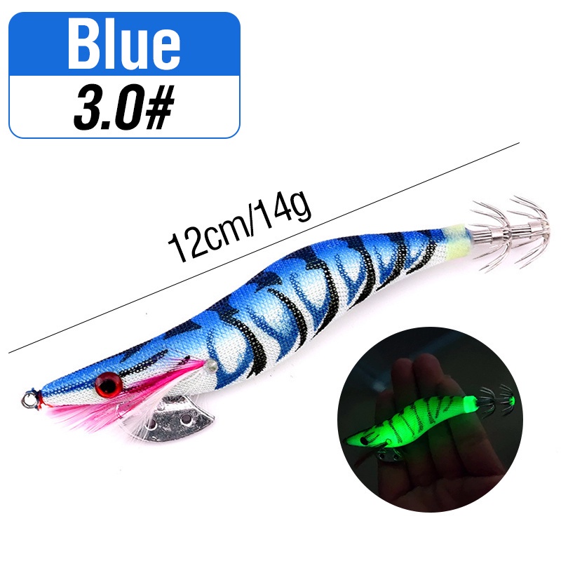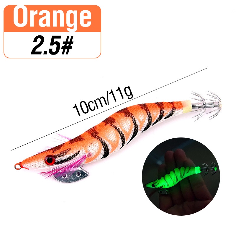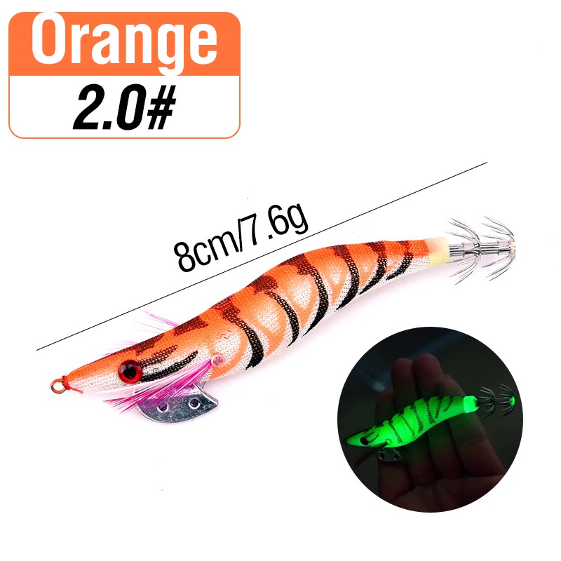 1pcs Luminous Shrimp Squid Jig Lure Saltwater Wood Shrimp Bait Artificial Spinner Baits Fishing Jigs for Octopus Fishing