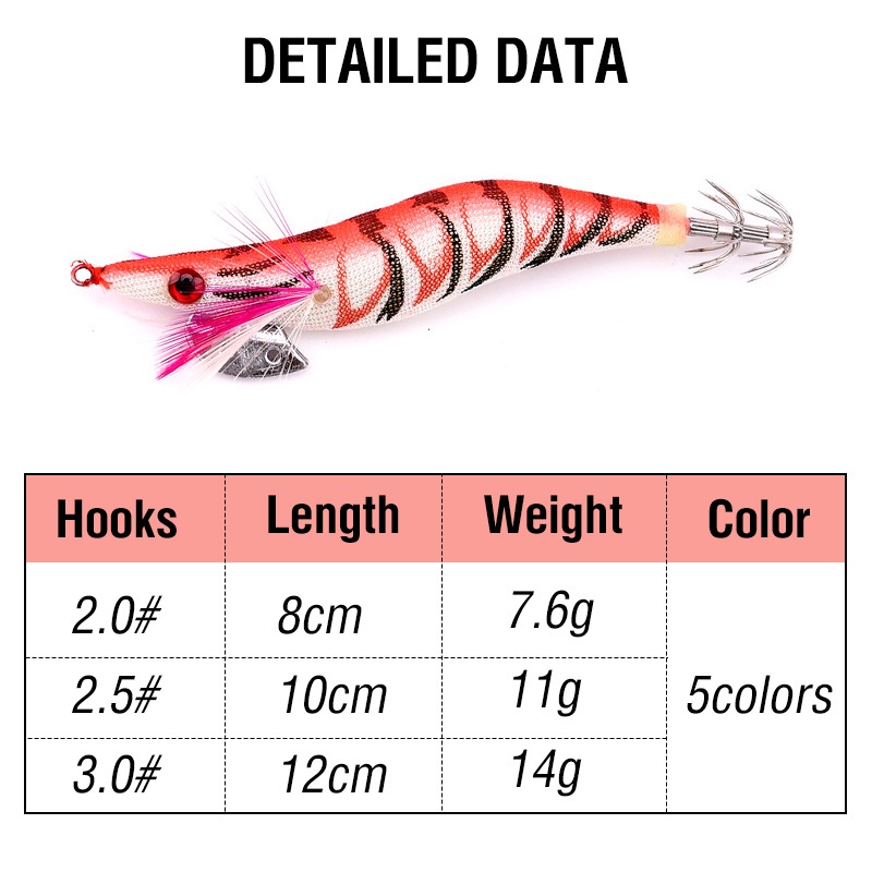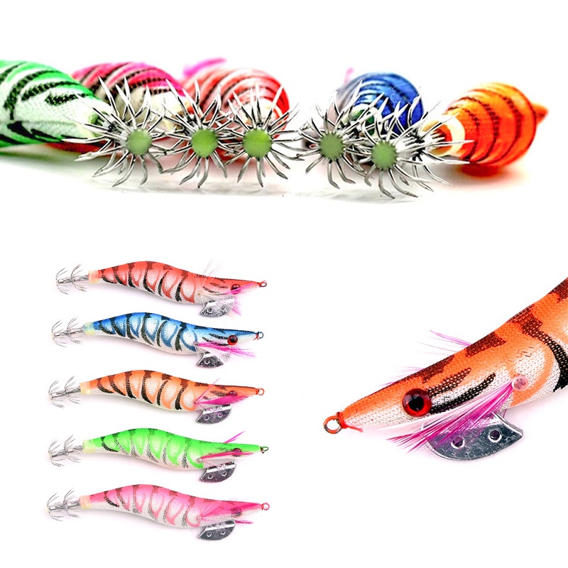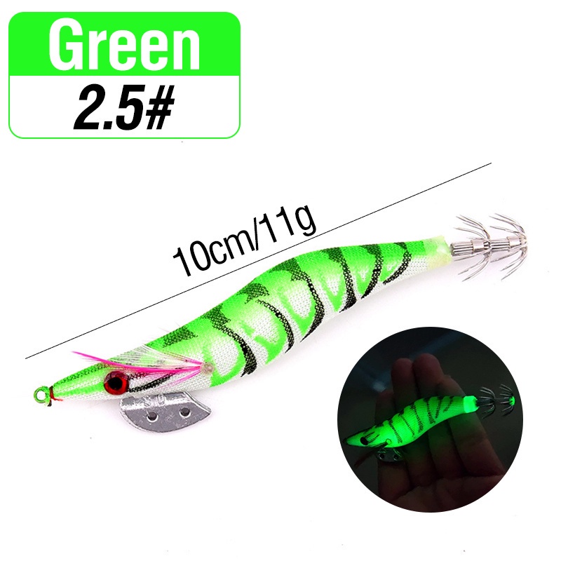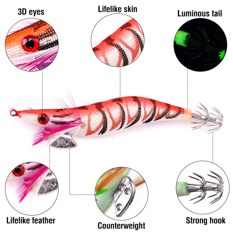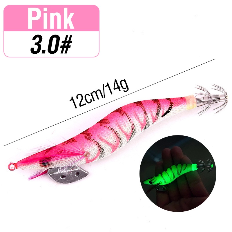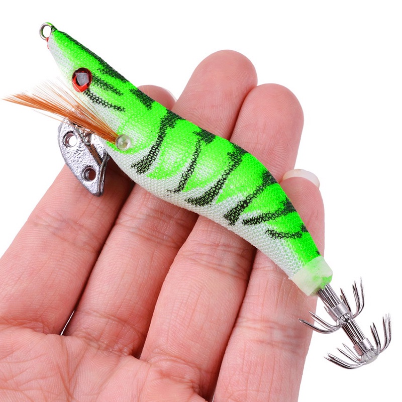 1pcs Luminous Shrimp Squid Jig Lure Saltwater Wood Shrimp Bait Artificial Spinner Baits Fishing Jigs for Octopus Fishing