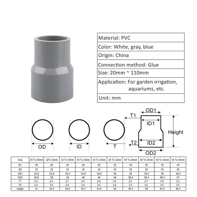 1pcs PVC Pipe Socket Reducer PVC Reducing Connector Paip Straight Adapter