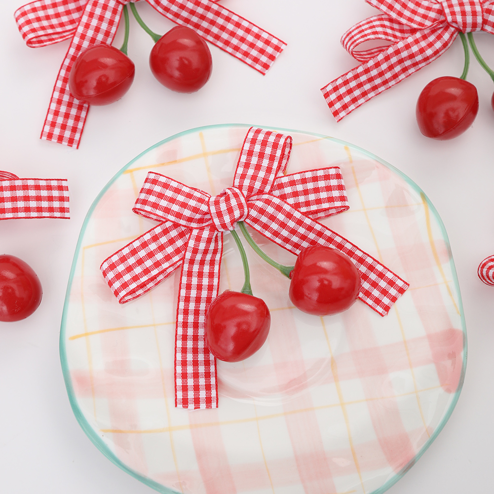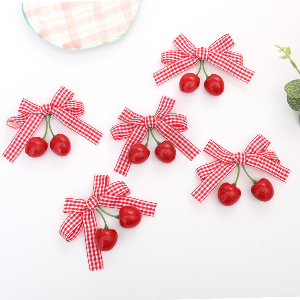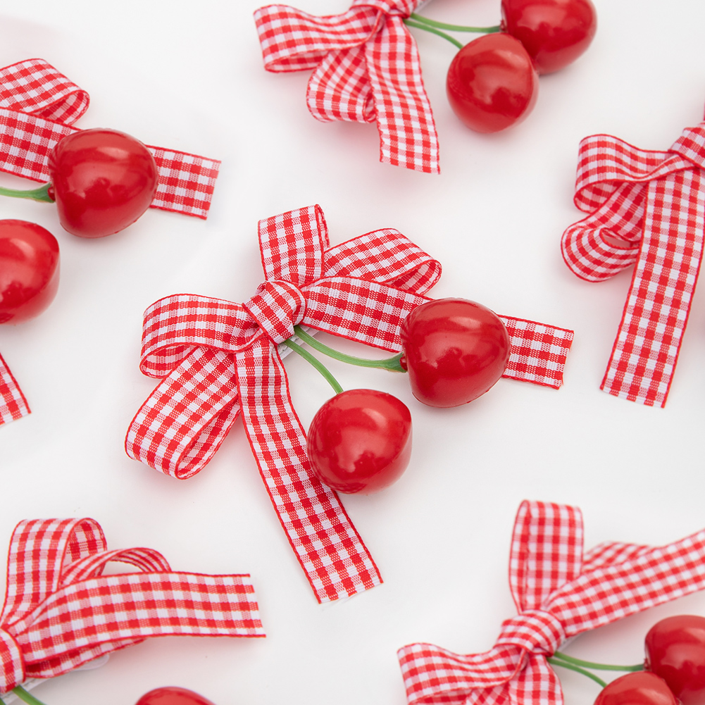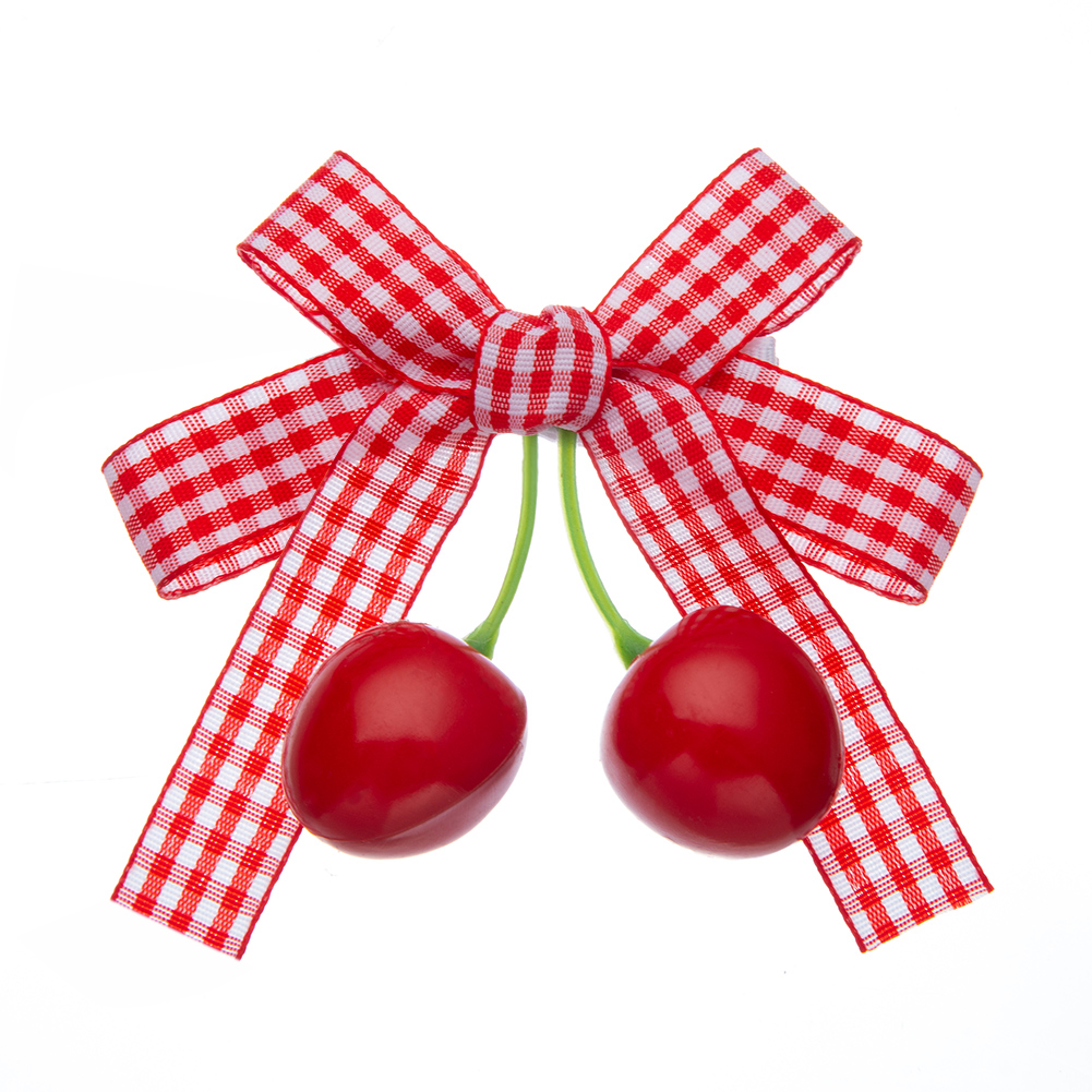 1pcs Spring Summer Girls Cherry Hair Clip Red Plaid Ribbon Dovetail Bow Pair Clip Hair Accessories Girl Fruit Headdress Baby Daily Seamless Does Not Hurt Hair Side Clip