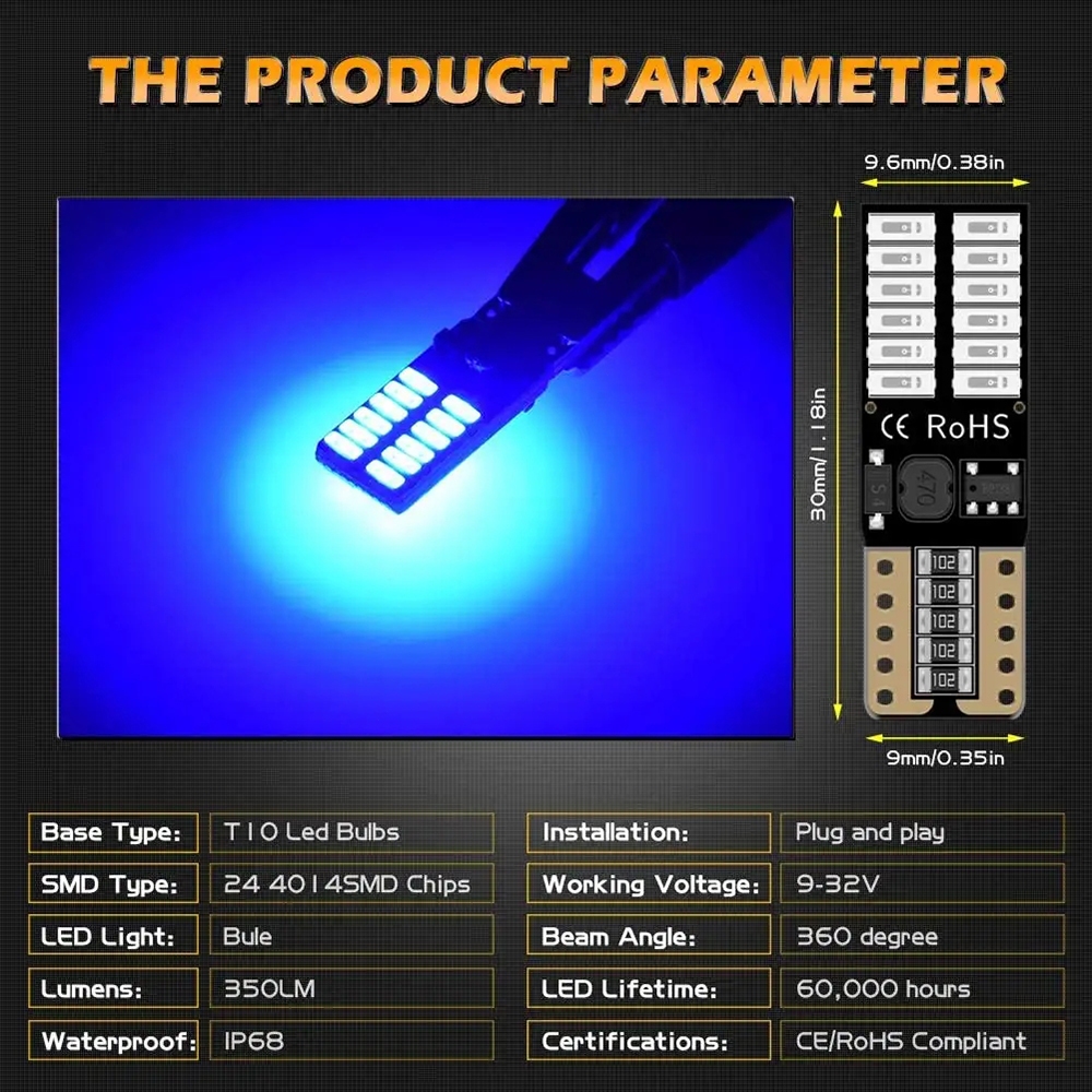 1pcs T10 Led Bulb 194 W5W 4014 vehicle LED side light The width light DRL 24-SMD 4014 Chipsets LED light