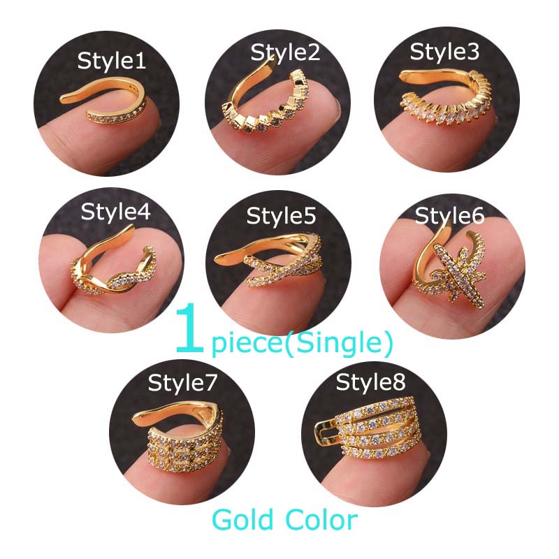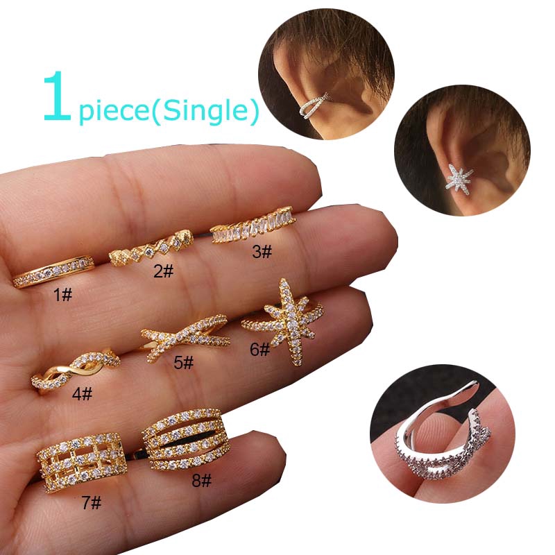 1piece Copper with Zircon Earrings Conch Pinna Ear Cuff No Piercing 10mm