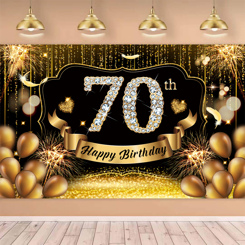 1set Black Golden Happy Birthday Backdrop Background 18th 30th 40th 50th Birthday Photo Background Birthday Party Backdrop Decor