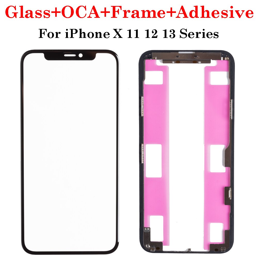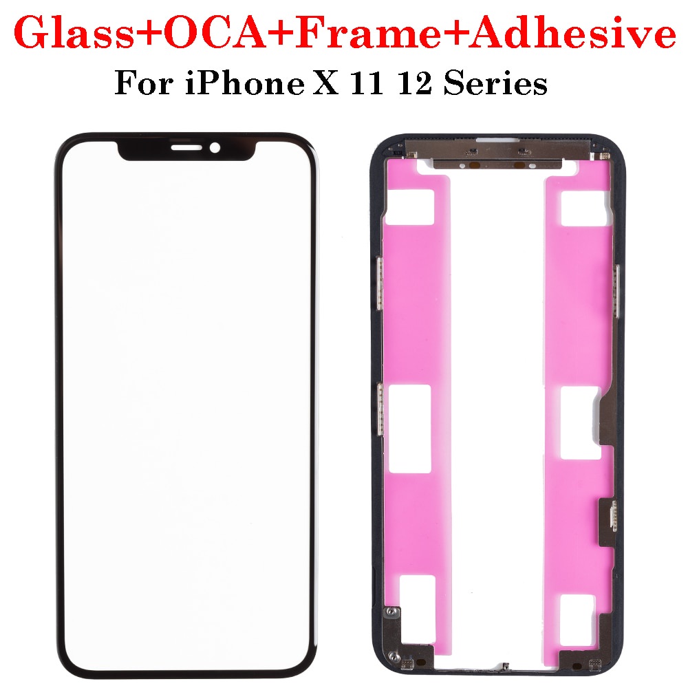 1set Front Screen Outer Glass OCA Frame Bezel With Adhesive Tape For iPhone X XS XR Max 11 12 13 Pro Max Mini LCD External Lens