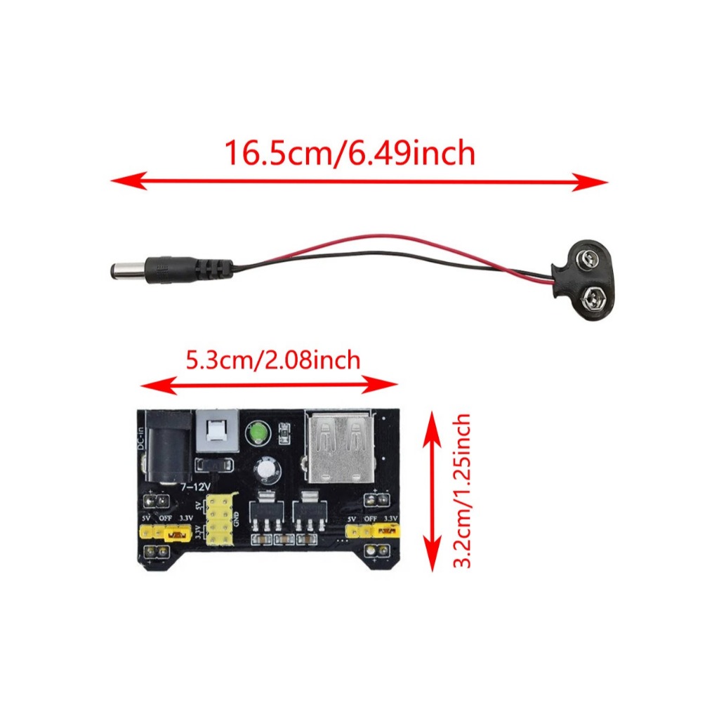1sets 3.3V 5V MB-102 Solderless Breadboard Power Supply Module with 9V Battery Clip Power Cable Male DC Jack Plug