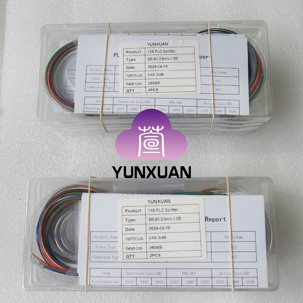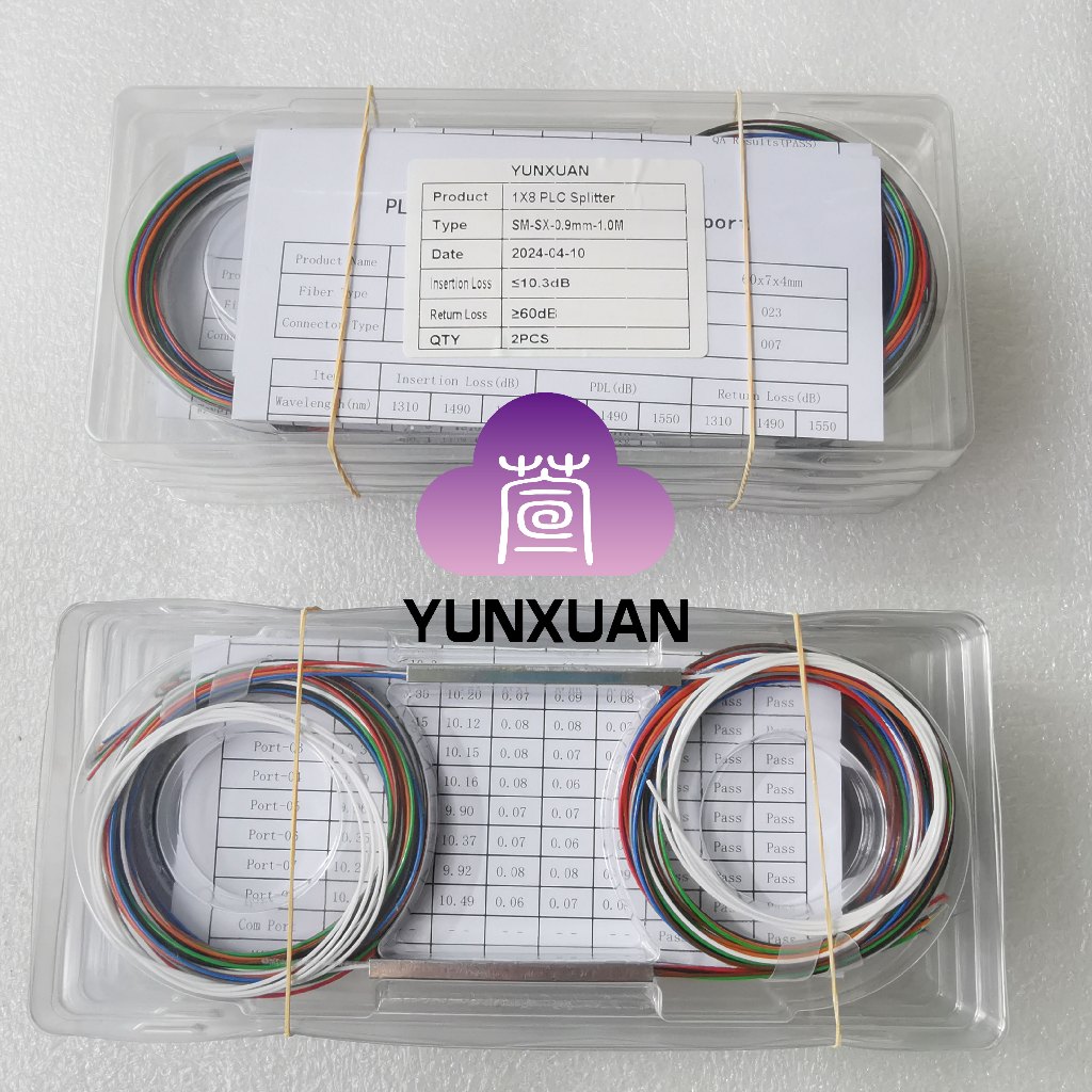 1x8 PLC Splitter Without Connector 0.9mm Steel Tube Single Mode Mini PLC
