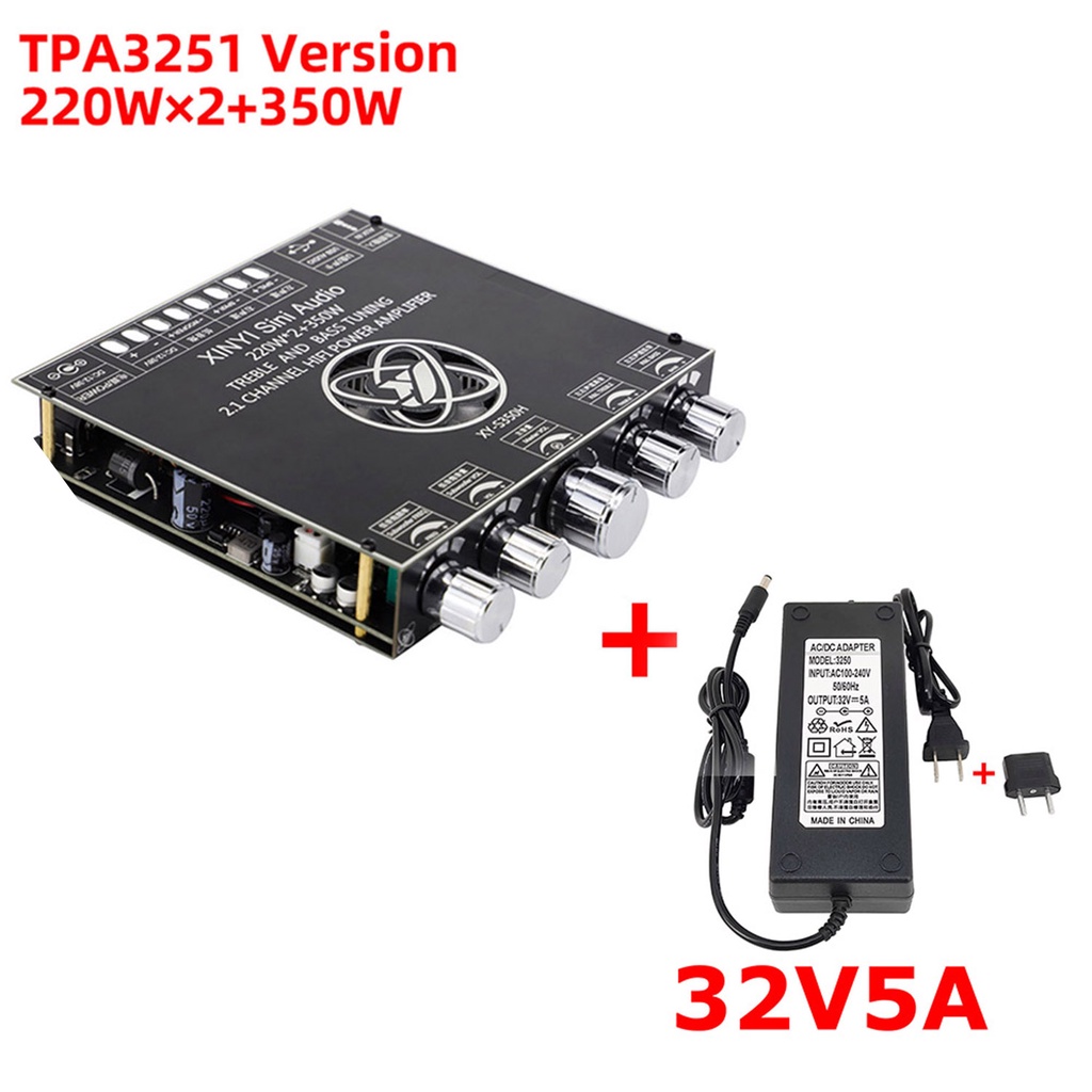 2*220W+350W TPA3251 Bluetooth Power Amplifier Board 2.1Ch Class D USB Sound Card Subwoofer Theater Audio Stereo 2.1Channel Amp