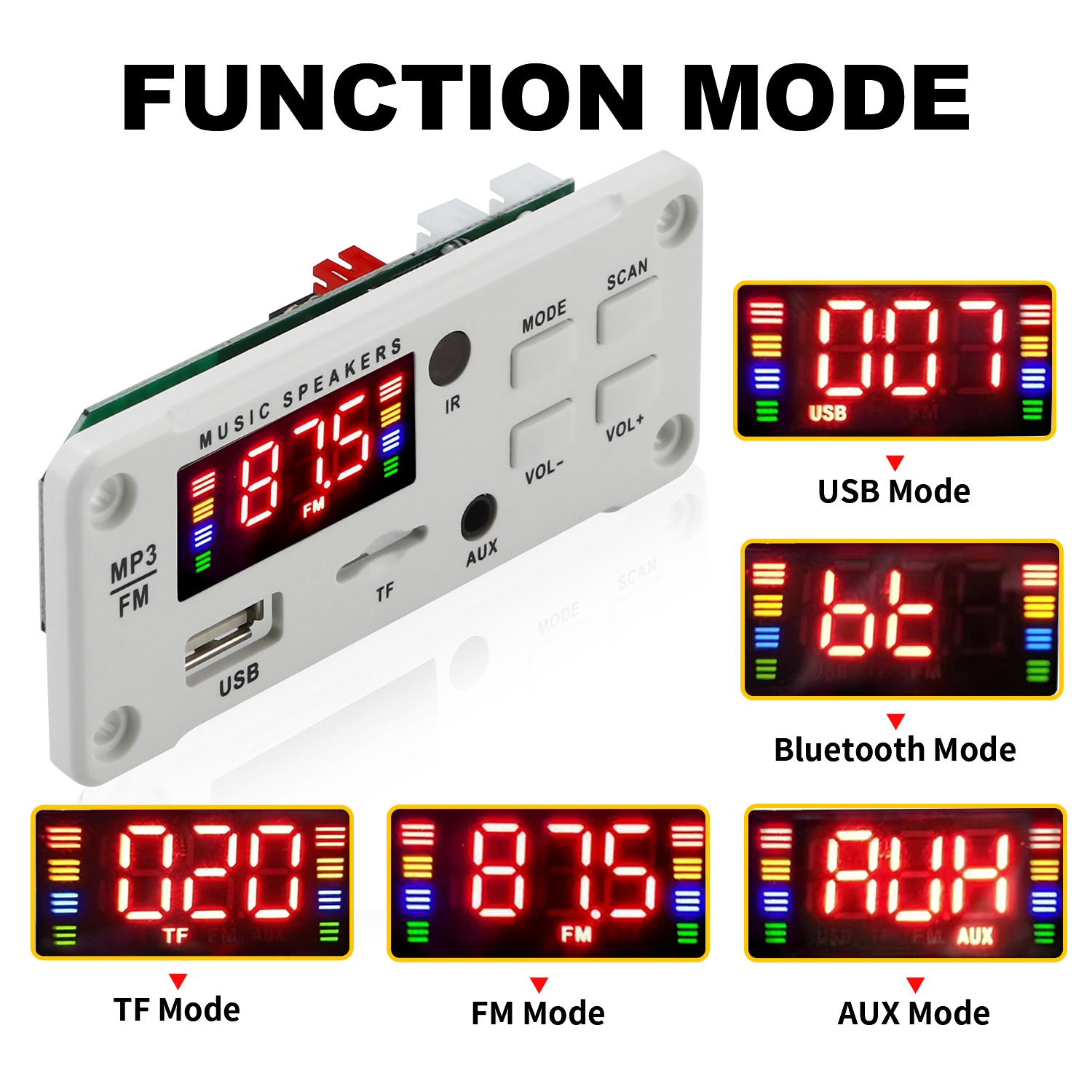 2*25W 50W Amplifier DC 6-12V MP3 Decoder Board Bluetooth 5.0 12V Car MP3 Player USB FM Call Recording Support Folder Switching