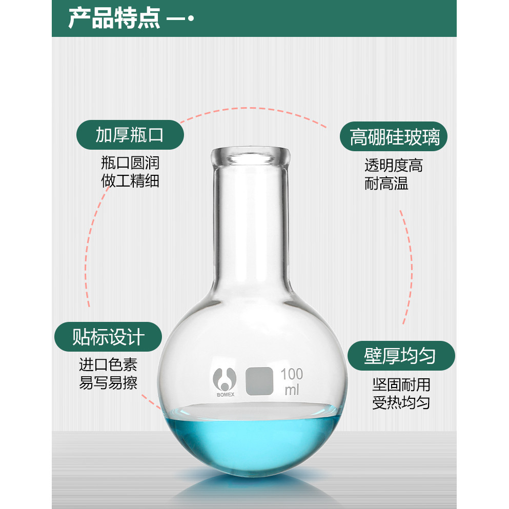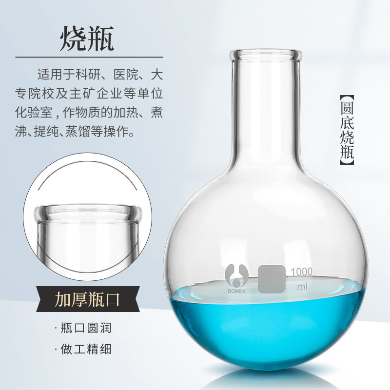 2,000ml Single Mouth Flask Flat Bottom Long Neck Distilled Flask Short Neck Round Bottom Flask Ball Flask 50/100/150/250/500/1,000ml Laboratory