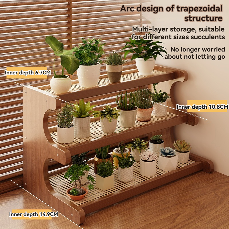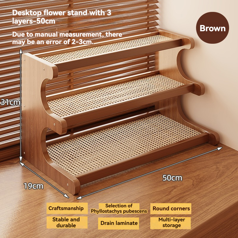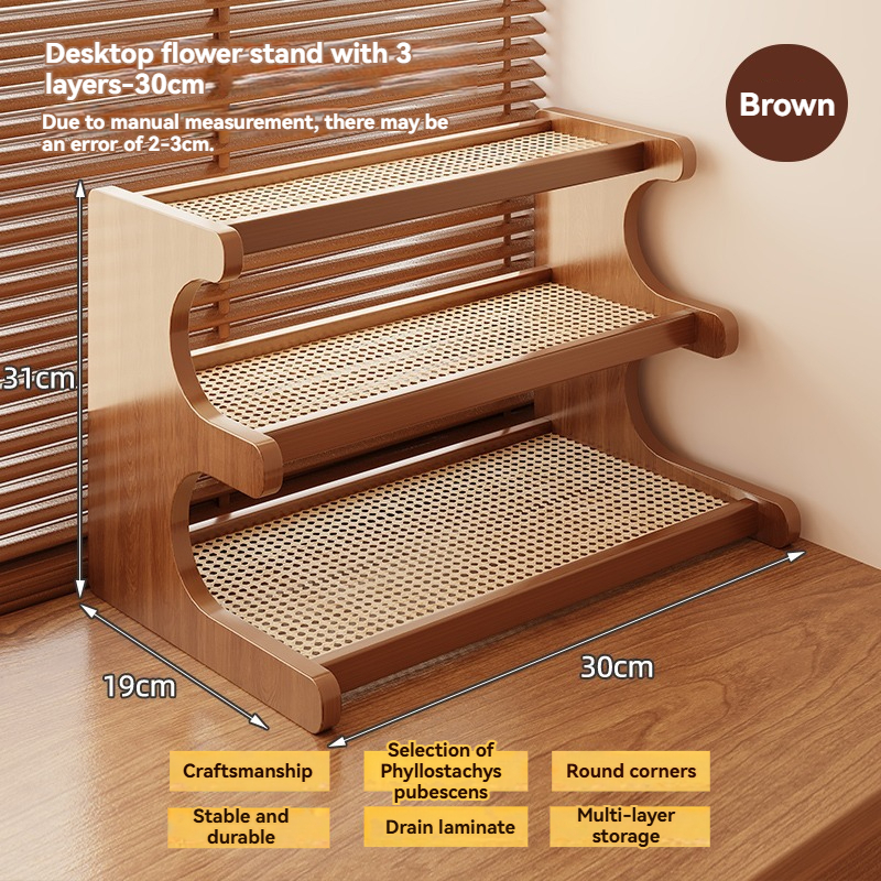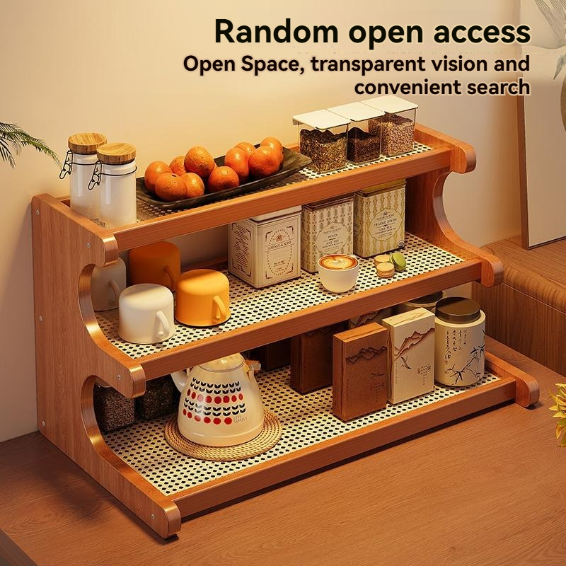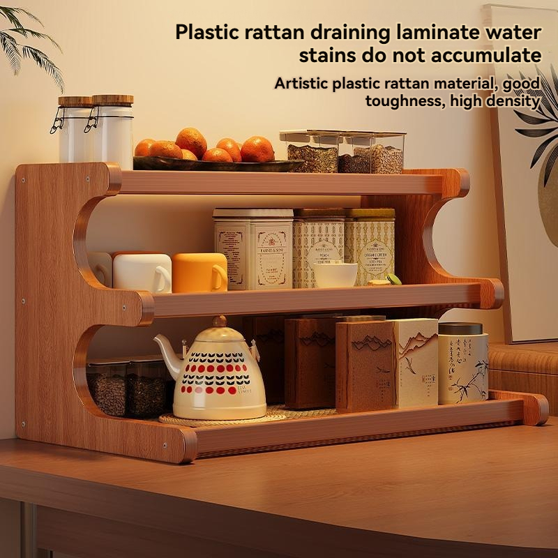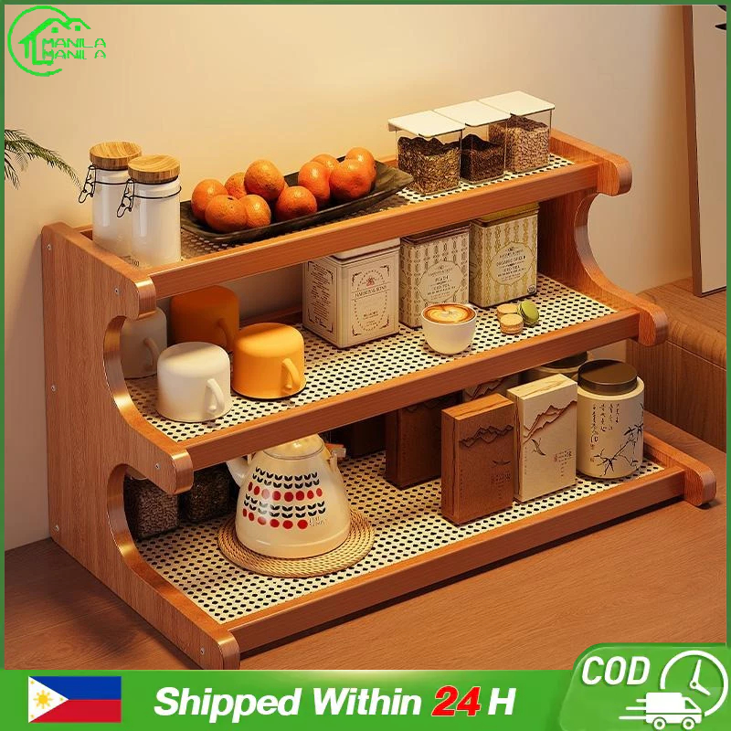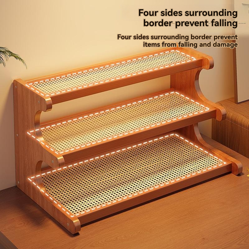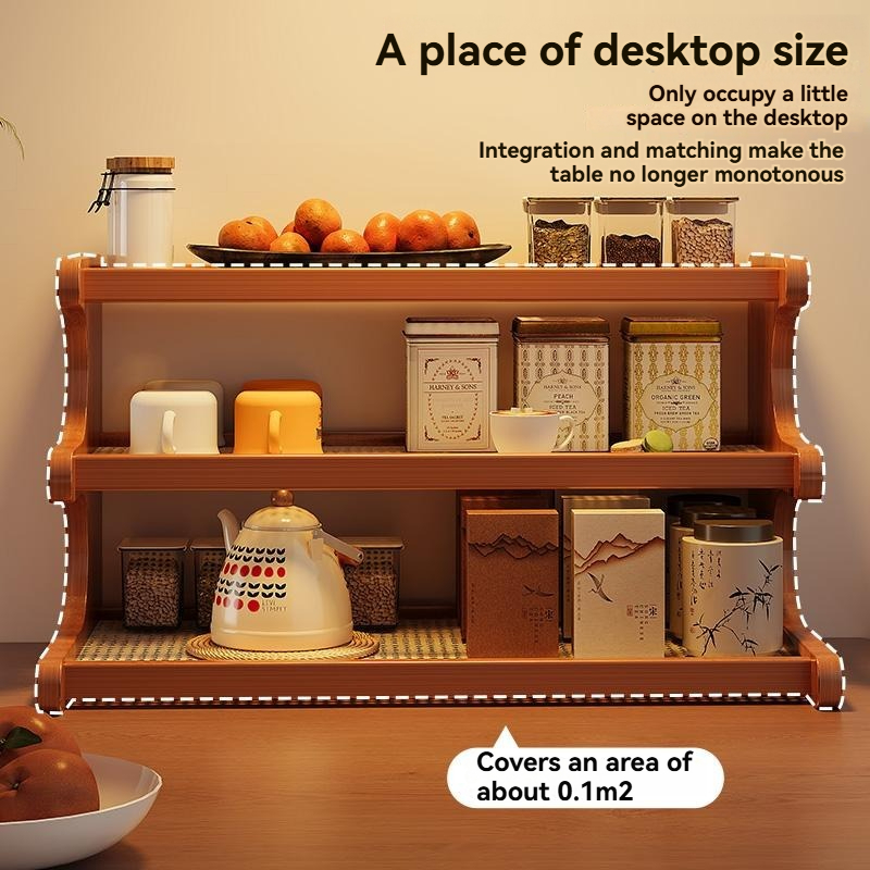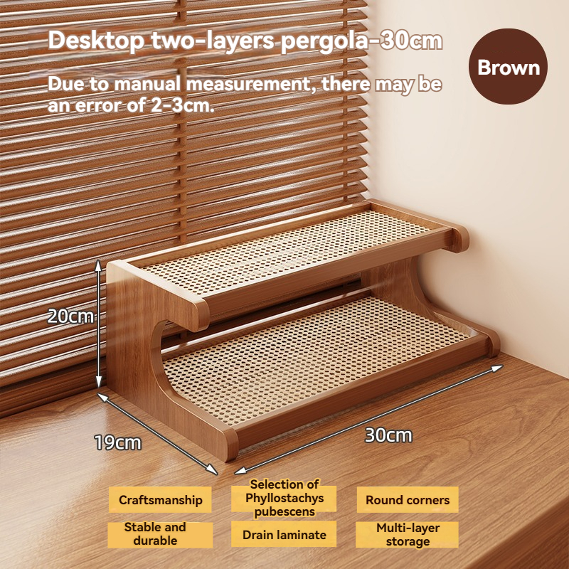 2/3 Tier Rattan Desktop Rack Storage Rack Bookshelf Simple Wooden Shlef Desktop Organizer