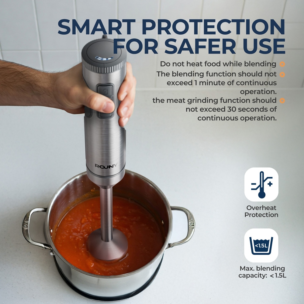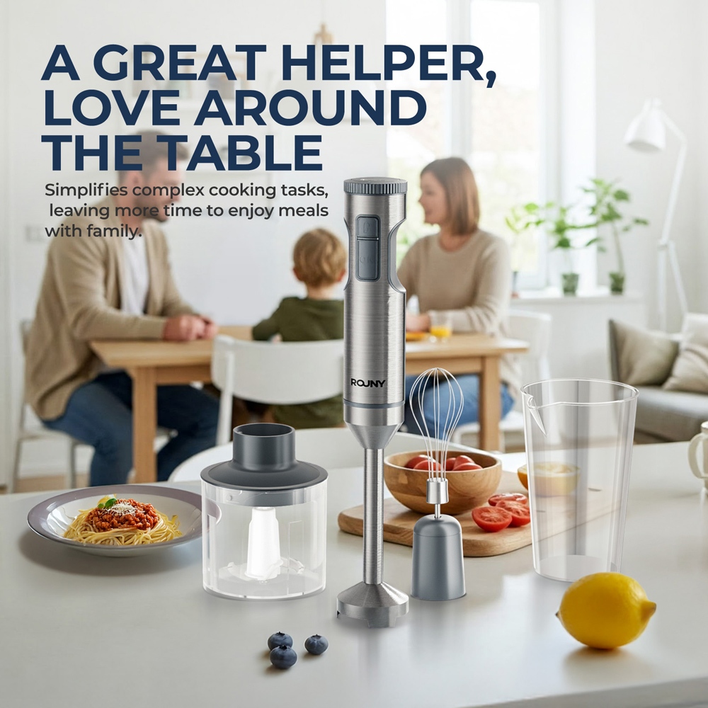 ROUNY Powerful Hand Immersion Blender 4-in-1 Stainless Steel Stick Food Mixer 700ml Mixing Beaker 500ml Processor Whisk