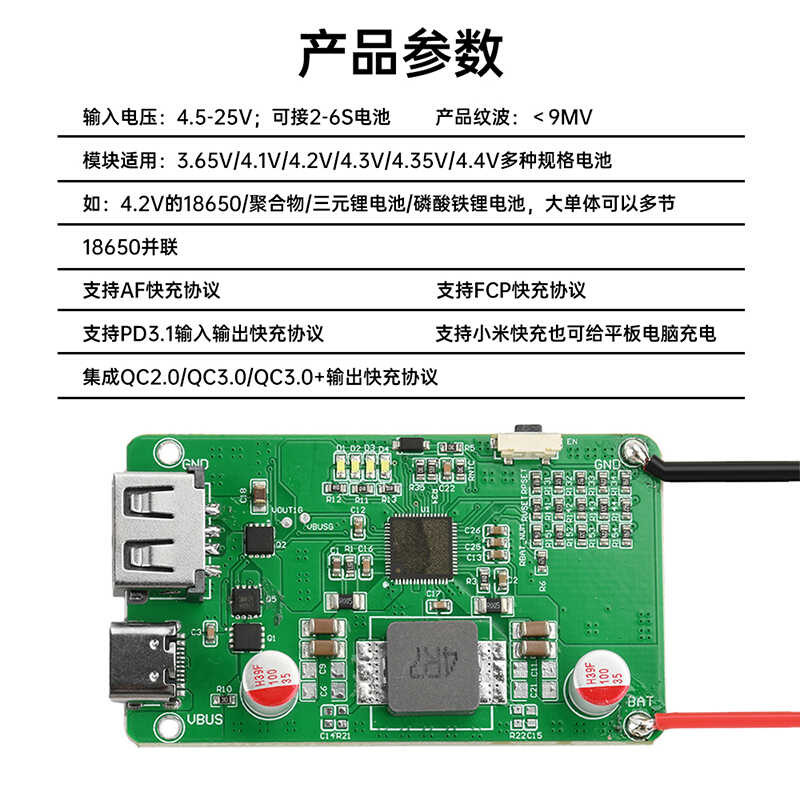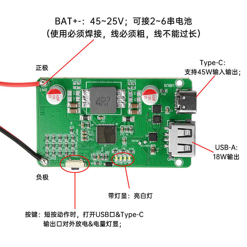 2-6S Lithium Battery Protection Motherboard 45W Full Protocol Power Bank Module PD QC Bidirectional